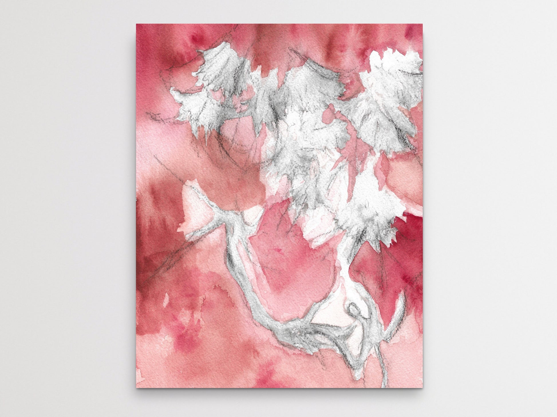 Watercolor and charcoal flower art print for your home, living room, den, study, kitchen, dining room, nursery, or office. A fine art print on archival matte paper.