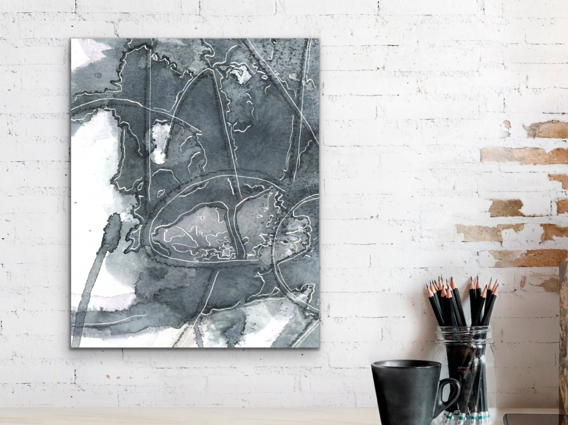 Abstract Language Detail Watercolor and Etch Art Print. Abstract Language Watercolor and Etch art print for your home, living room, den, study, kitchen, dining room, nursery, or office. A fine art print on archival matte paper.
