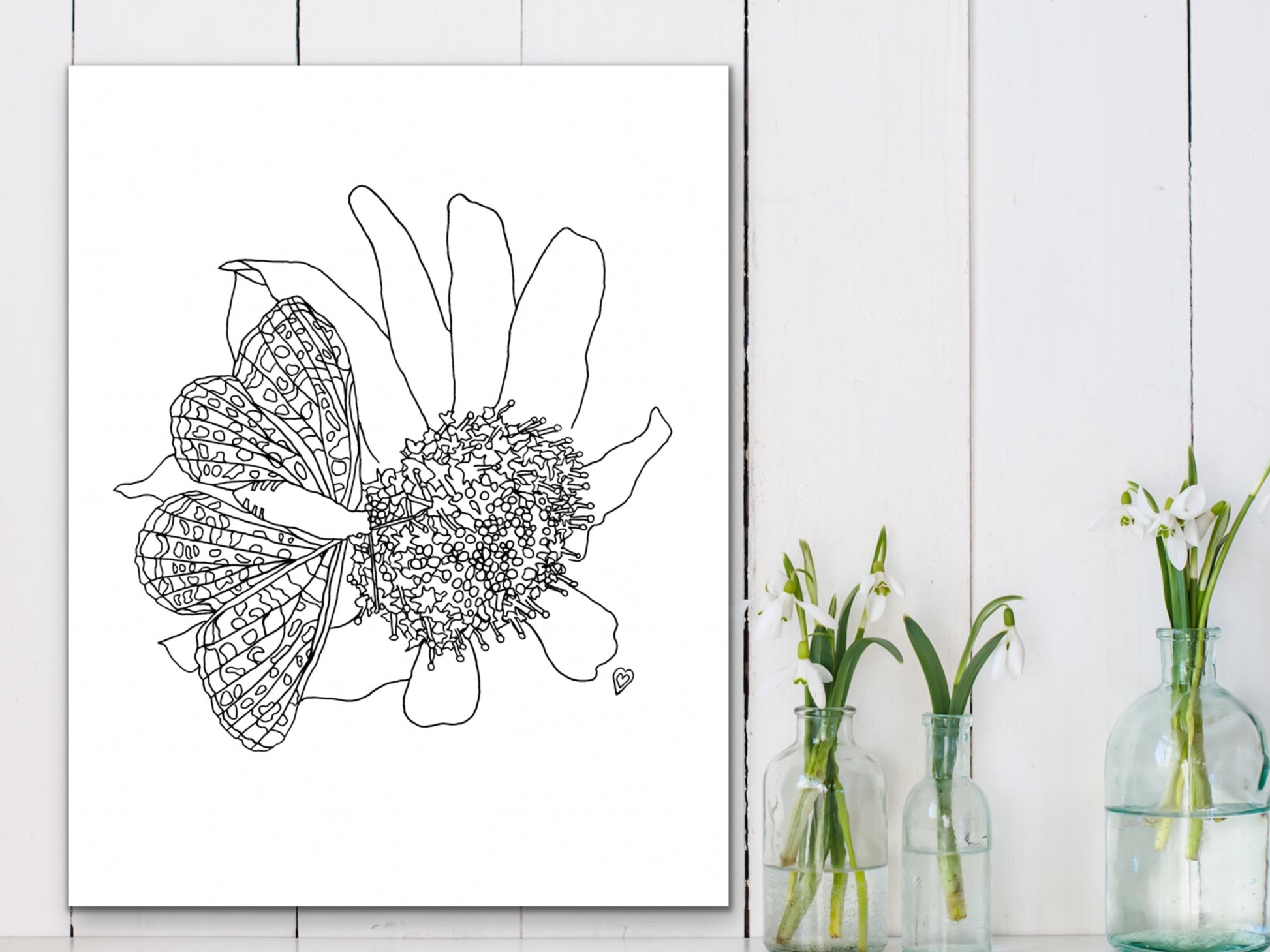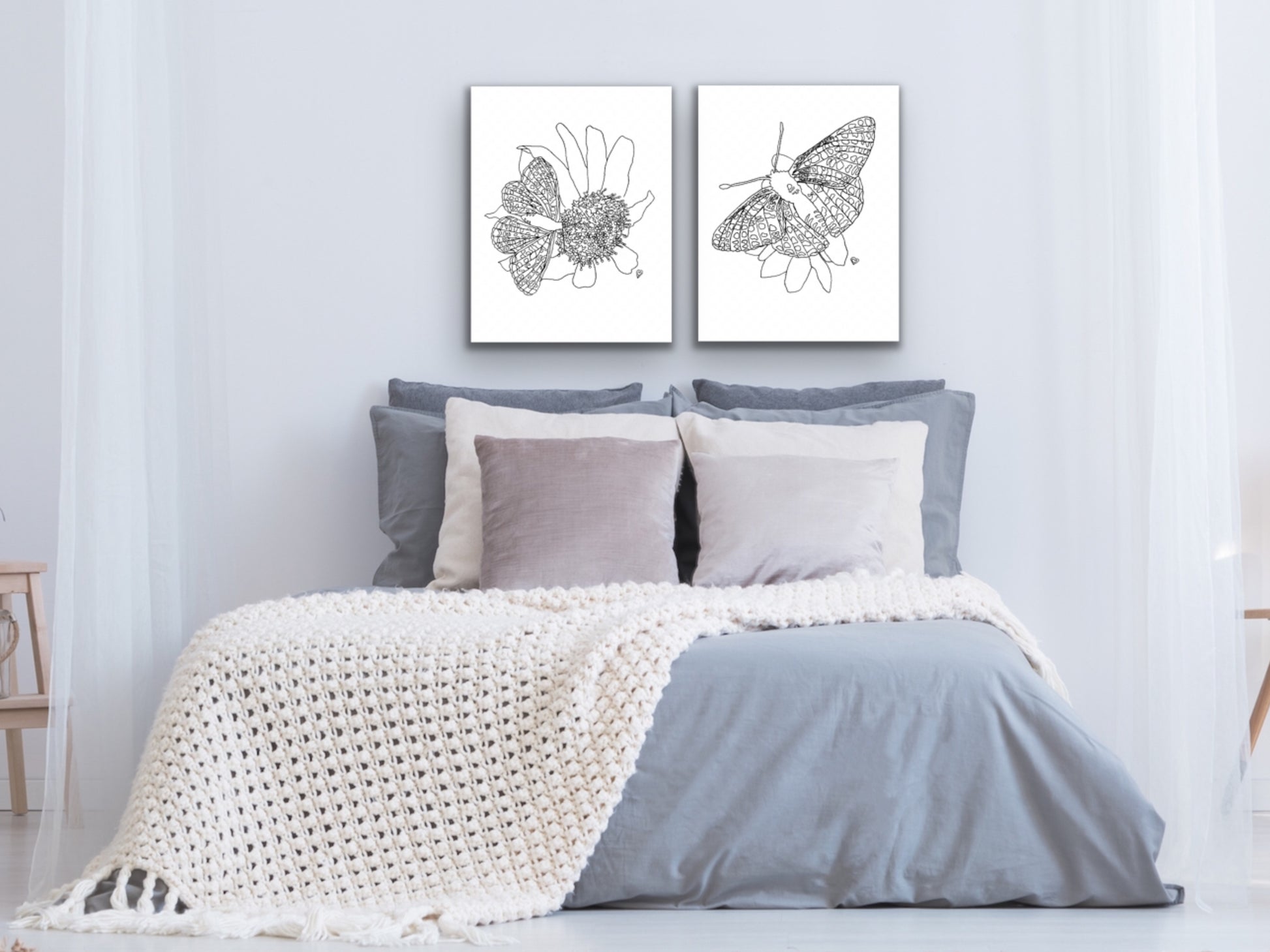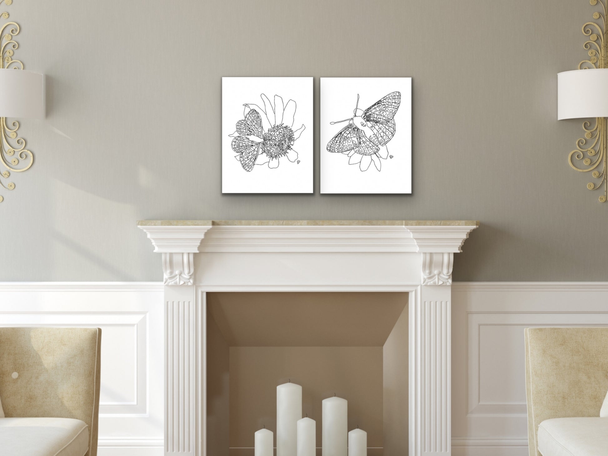 Maryland Checkerspot Butterfly Art. An ink art print of a Checkerspot Butterfly 1 for your home, kitchen, dining room, study, den, living rom, office, kid's room, or nursery. A fine art print on archival matte paper.