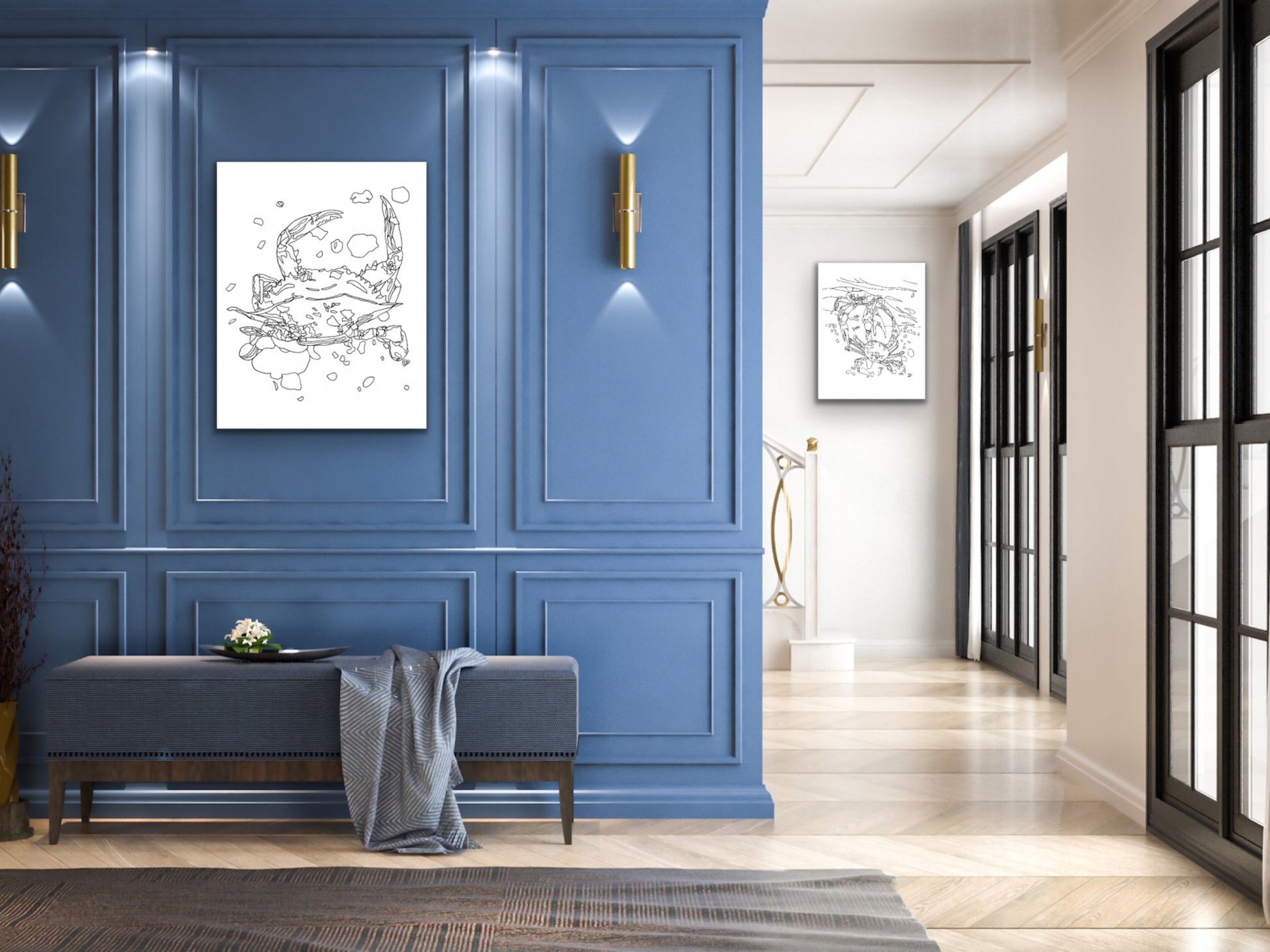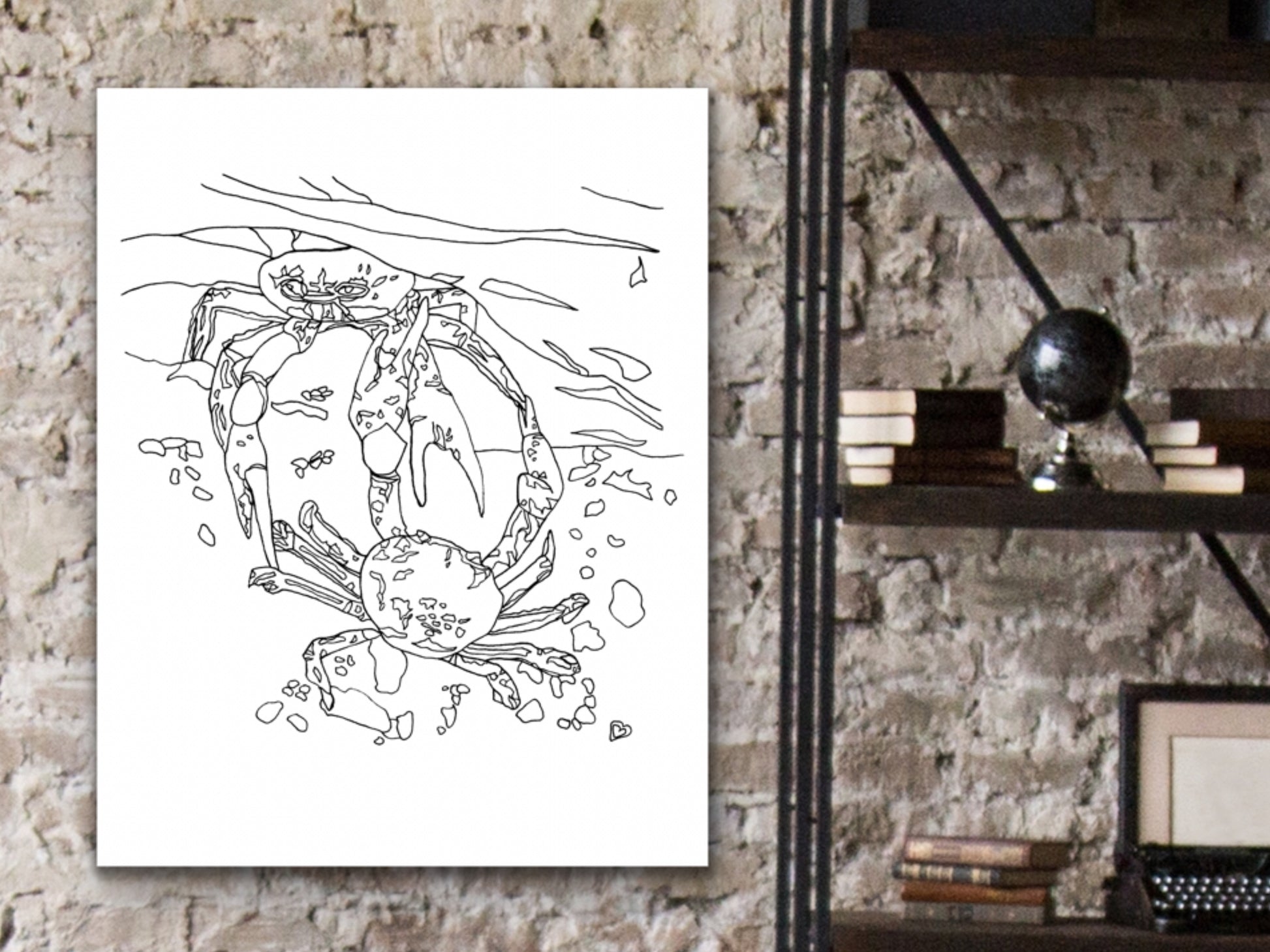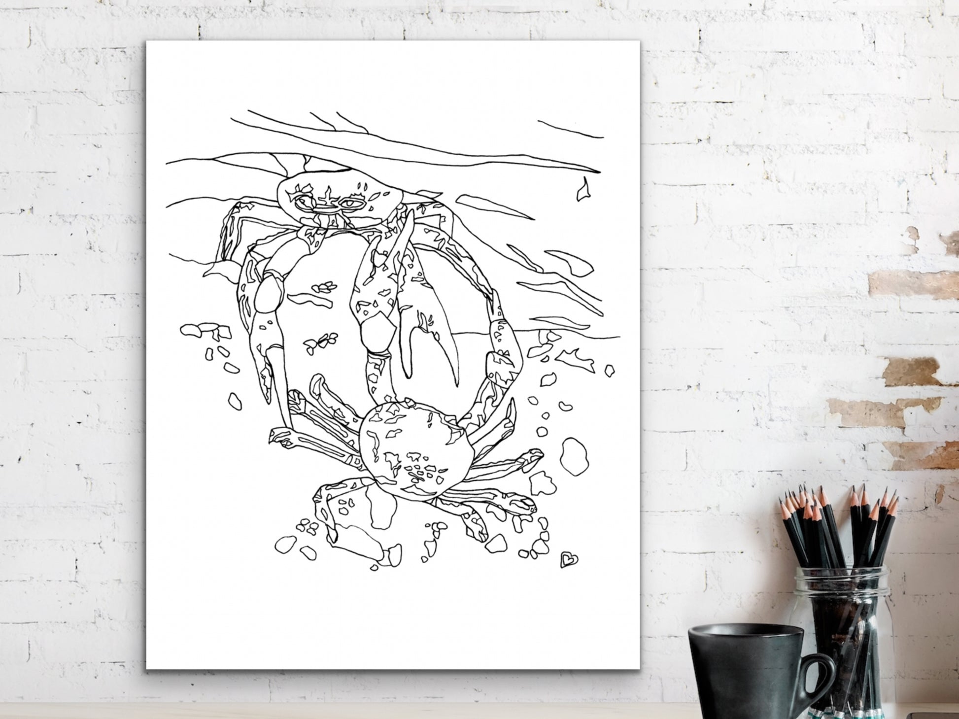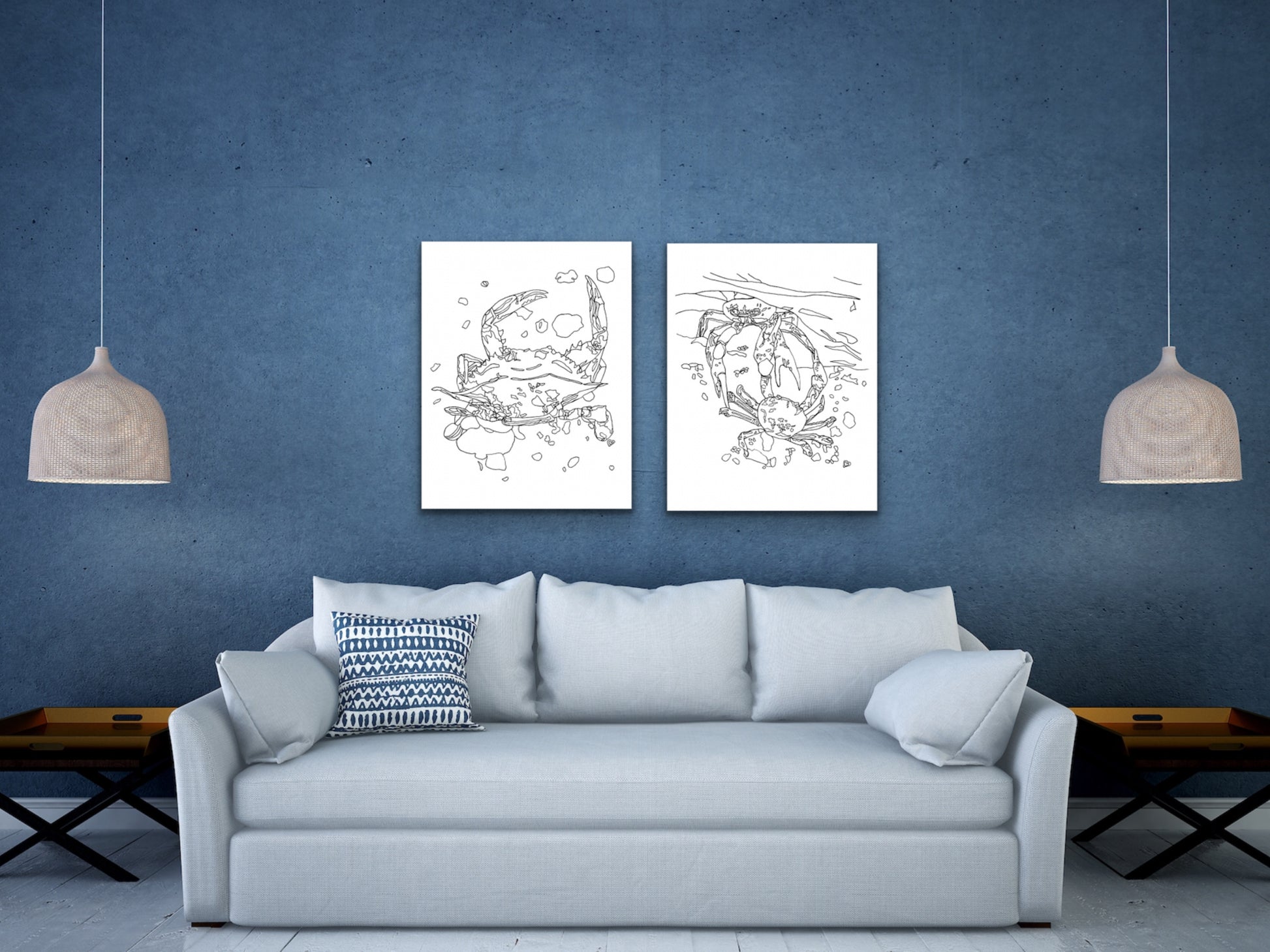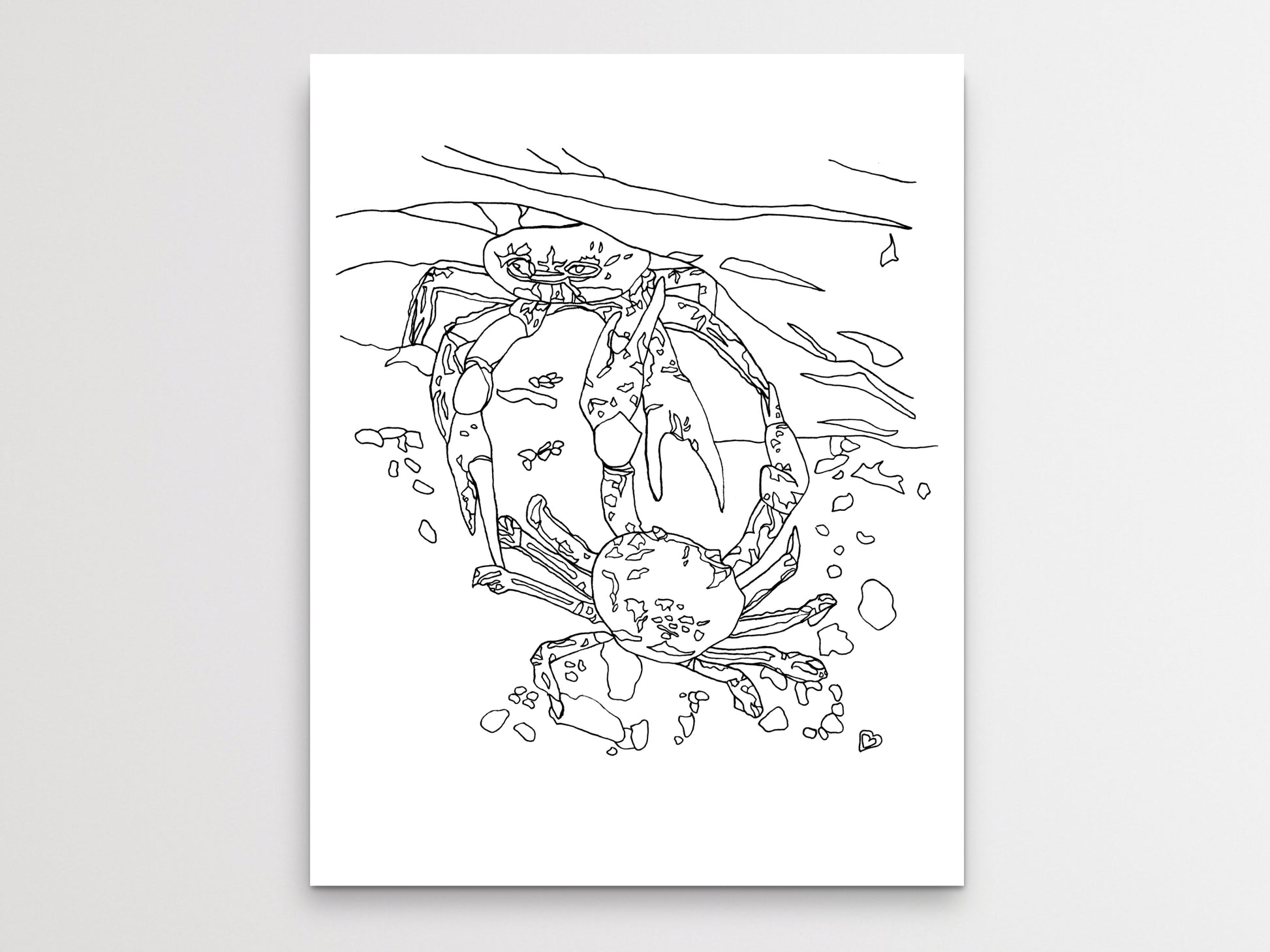 An ink art print of Two Blue Crabs for your home, kitchen, dining room, beach home, study, den, living rom, office, kid's room, or nursery. A fine art print on archival matte paper.