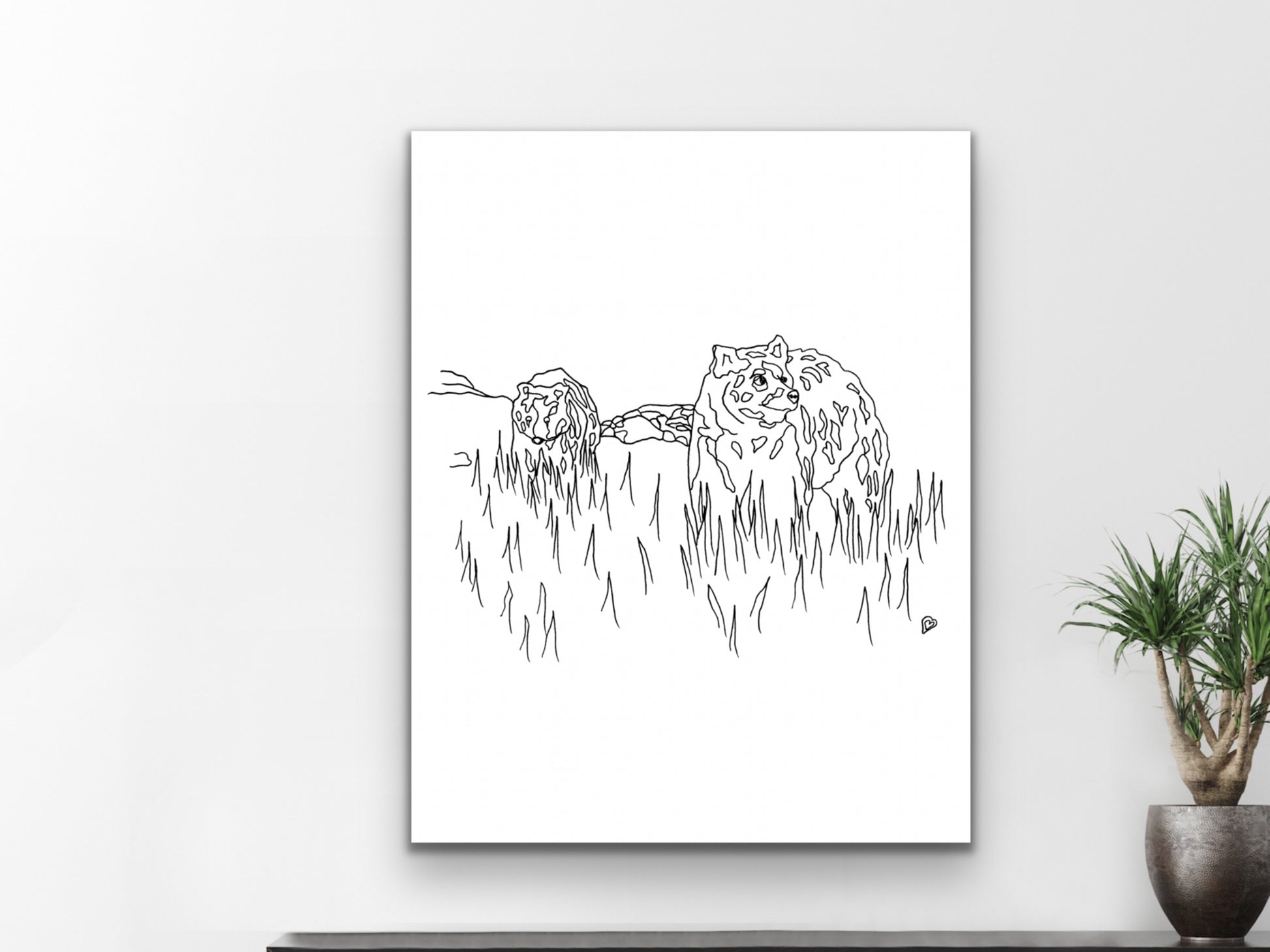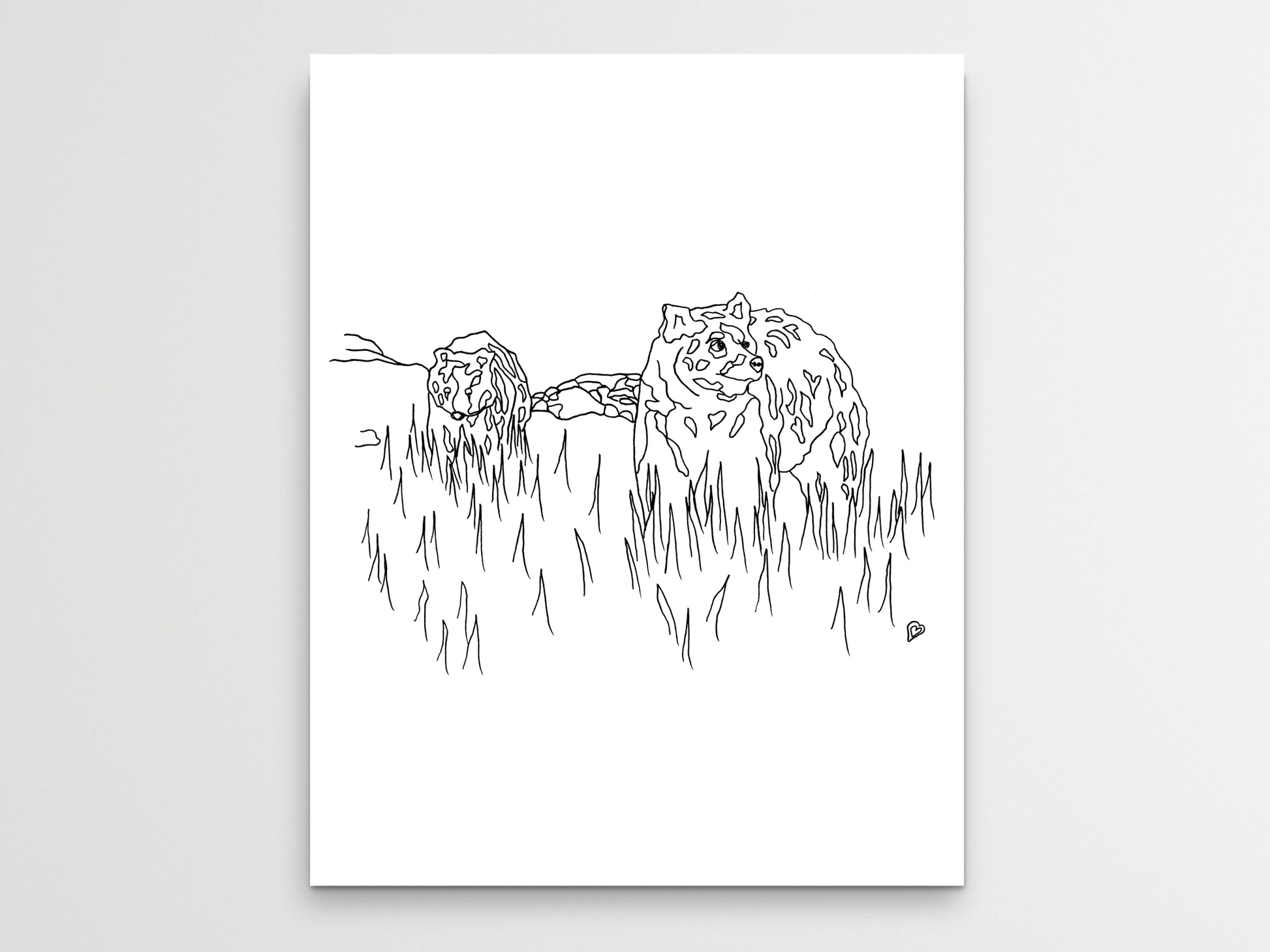 State Symbol Grizzly Bear Art. An ink art print of a Grizzly Bear and Cub for your home, study, dining room, den, living rom, office, kid's room, or nursery. A fine art print on archival matte paper.