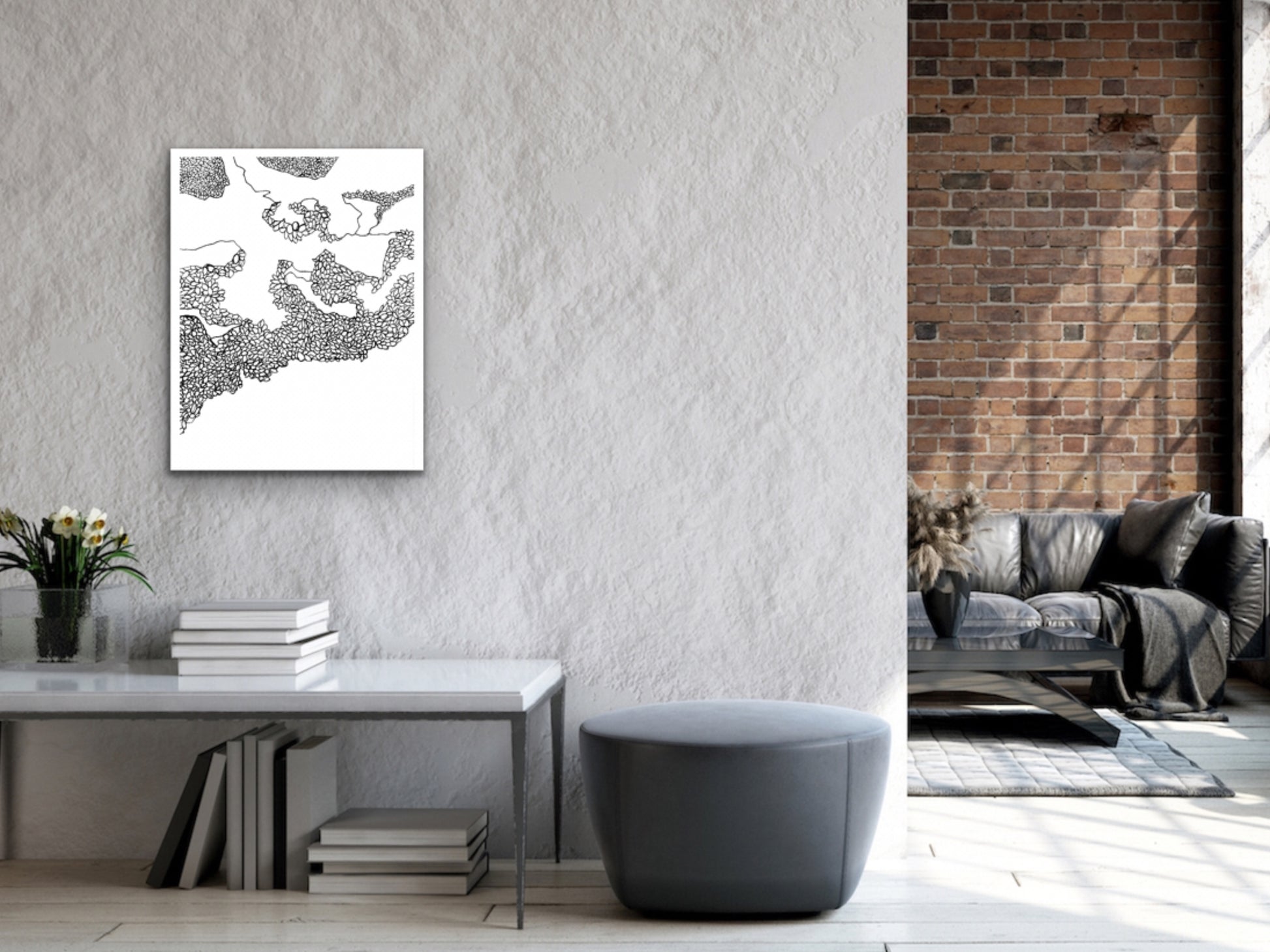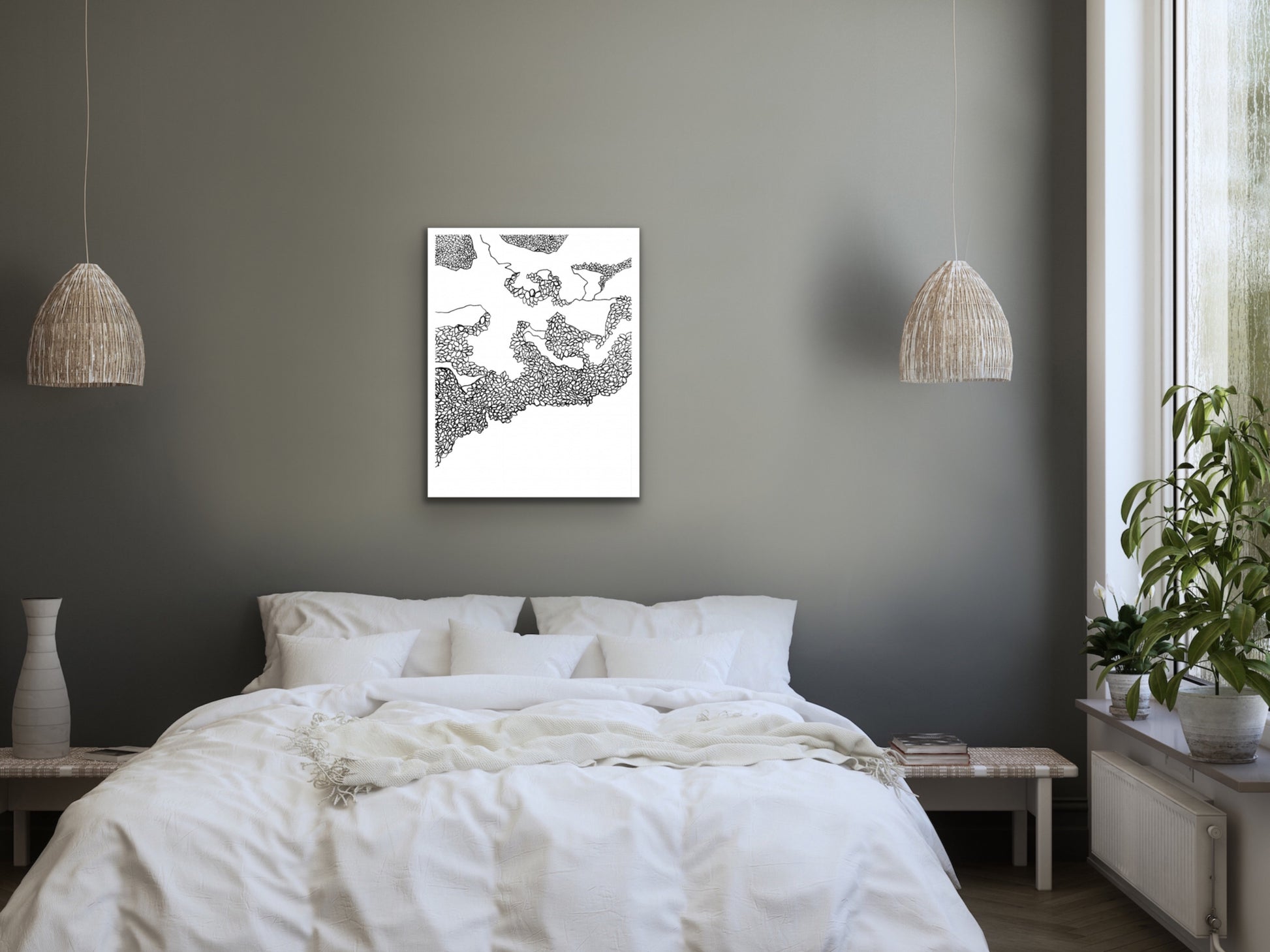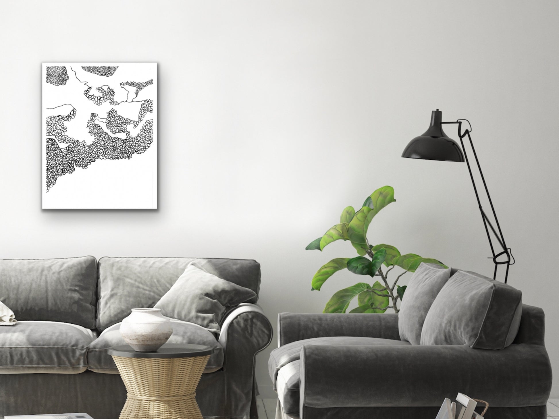 An ink line art art print of Carpinteria Beach for your home, kitchen, dining room, beach home, study, den, living rom, office, kid's room, or nursery. A fine art print on archival matte paper.