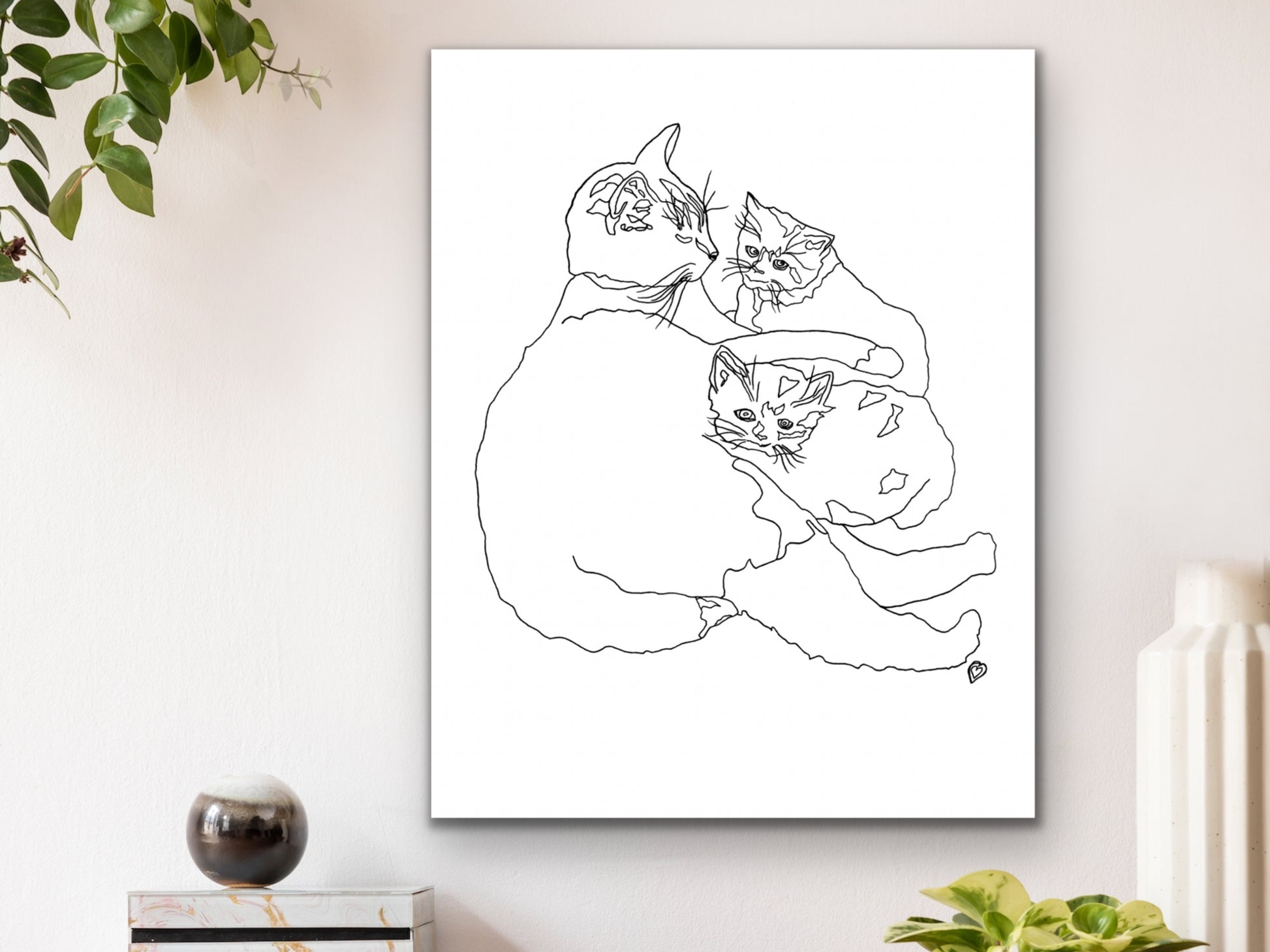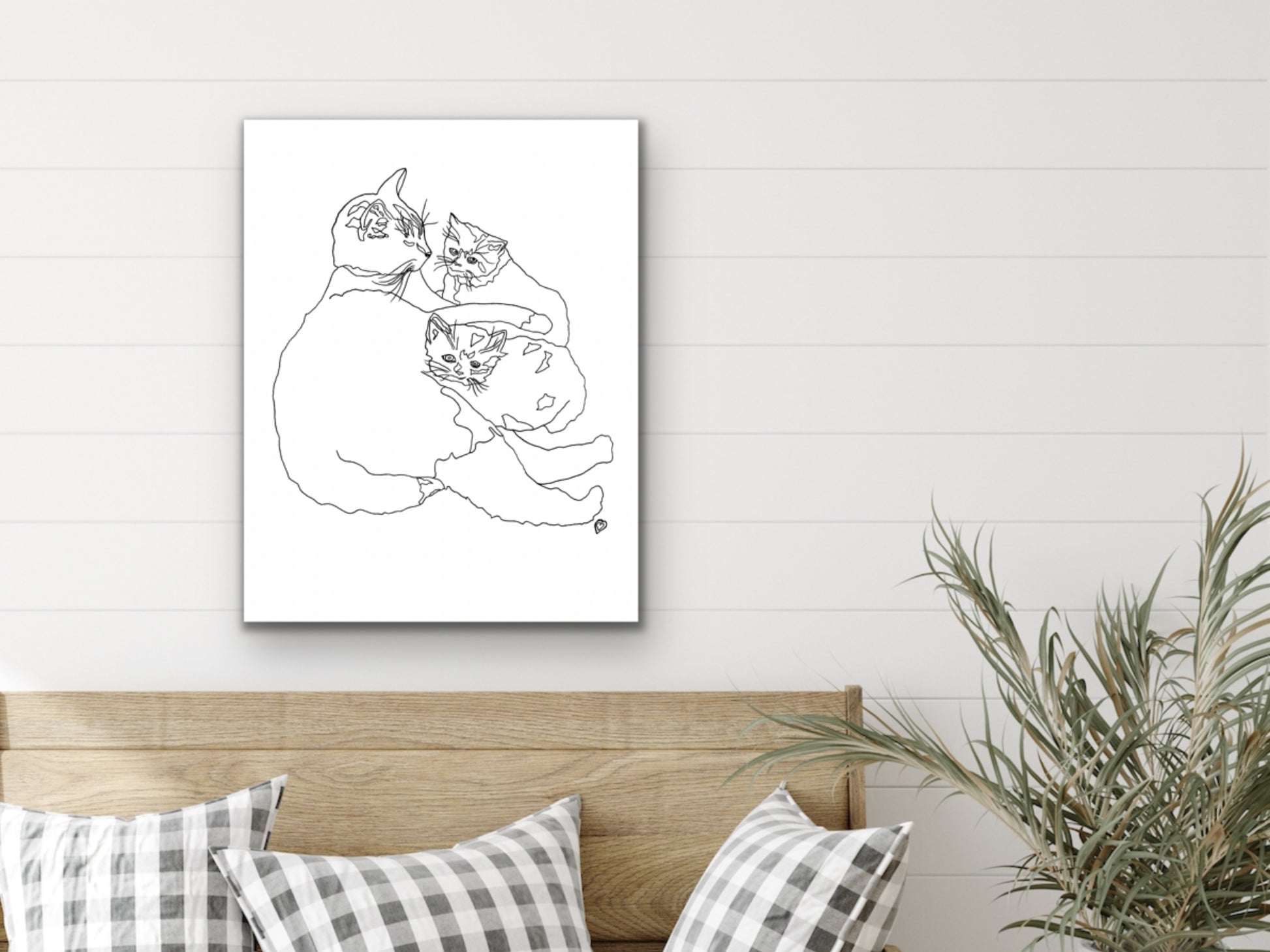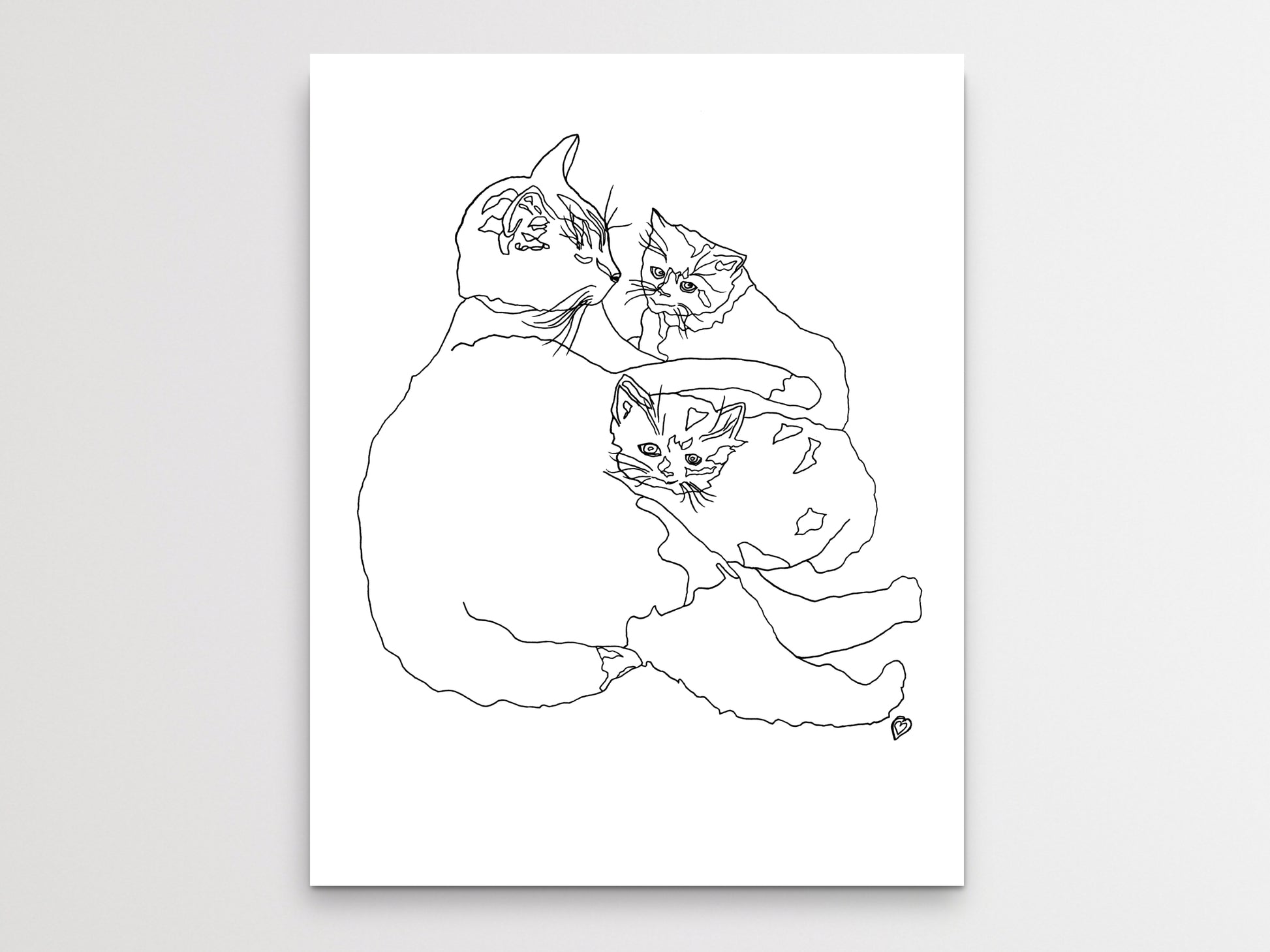 Pennsylvania State Shelter Cat. Cat and Kittens Line Art Print