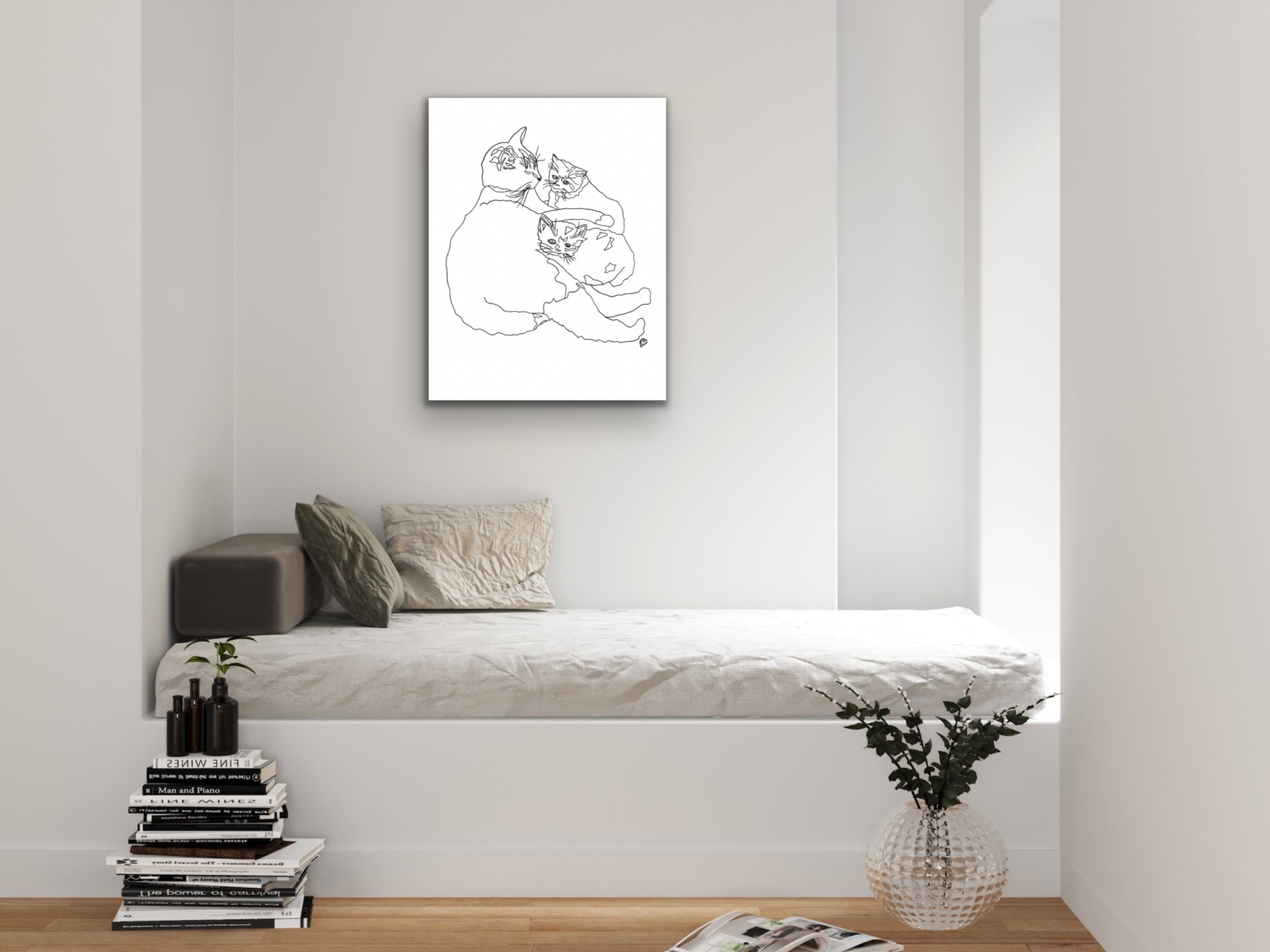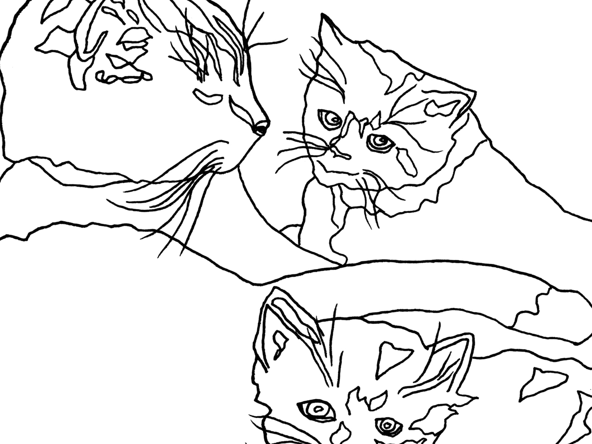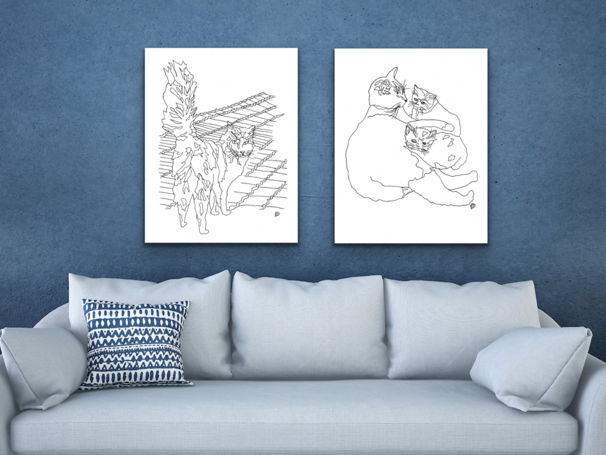 Pennsylvania State Shelter Cat. Cat and Kittens Line Art Print
