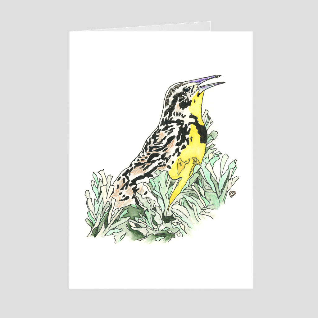 This Meadowlark Greeting Card is blank inside ready to be inscribed and sent to your loved one. Images show front and back of the card. This high quality 5 x 7 paper card comes pre-folded, with a white envelope. Works well with regular ballpoint pens after a short drying time. Card is folded intentionally offset to allow a slight overhang so the cards can be easily opened.Current production time: Estimated production time approx. 6 days. Shipped USPS First Class PKG with tracking.Comes packed in cello sleeve and flat mailer.For personal use only. For commercial or licensing inquiries please contact me. Image inspiration attribution: "0455_meadowlark_munsel_odfw" by Oregon Department of Fish & Wildlife is licensed under CC BY-SA 2.0