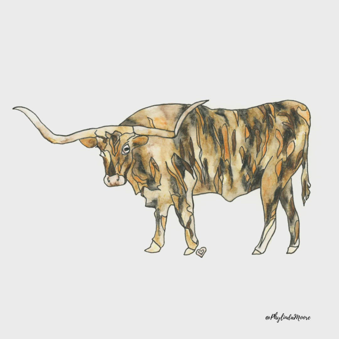 Longhorn Watercolor Art Print by Phylinda Moore.