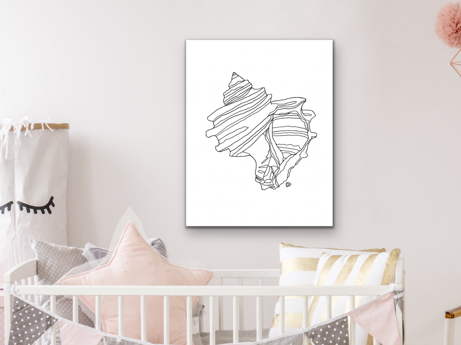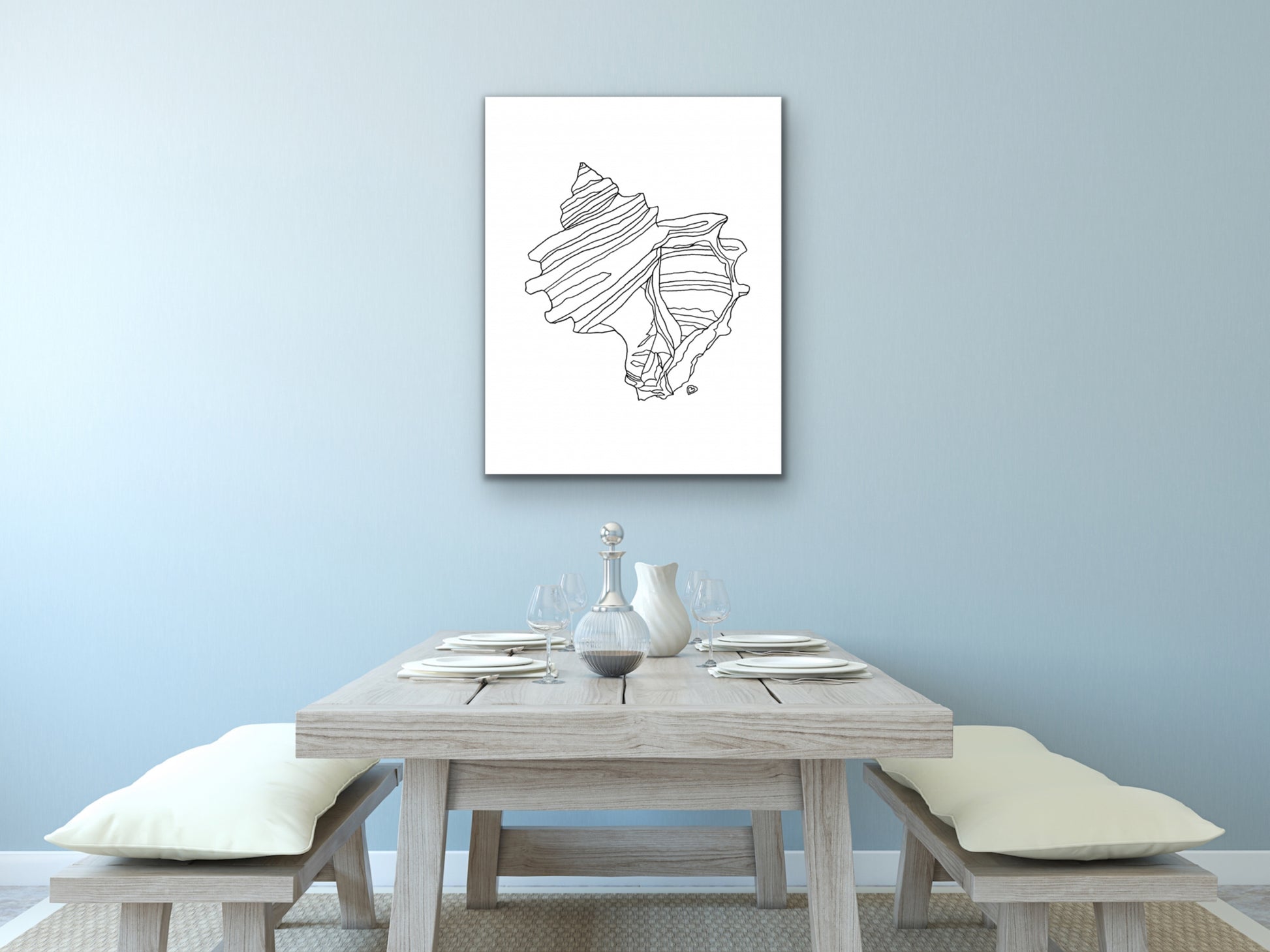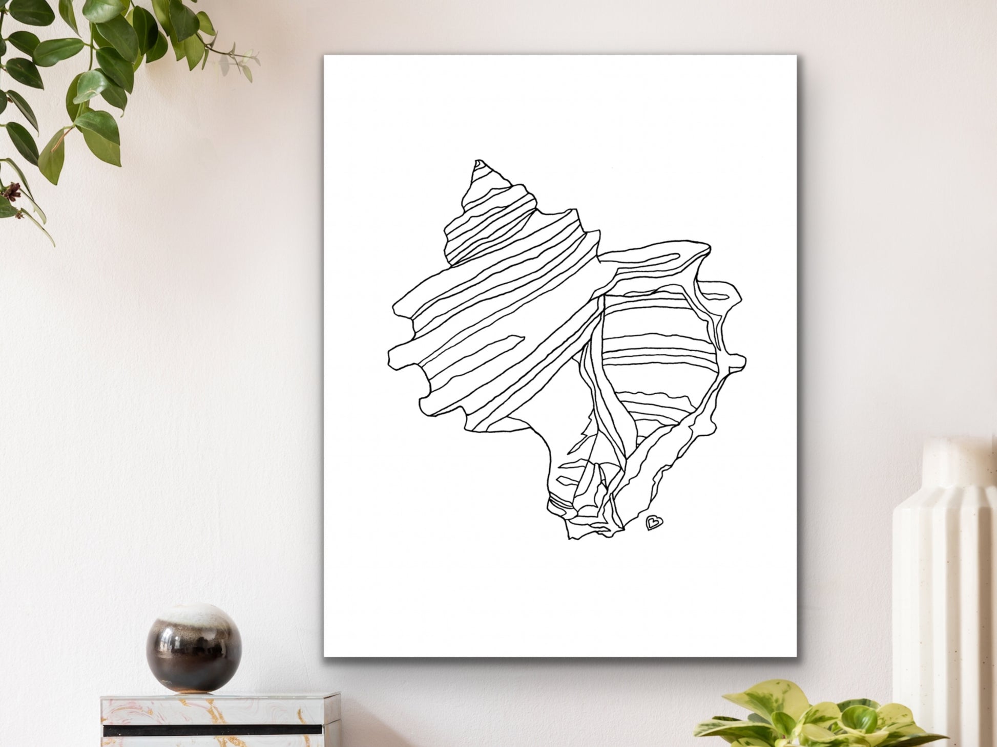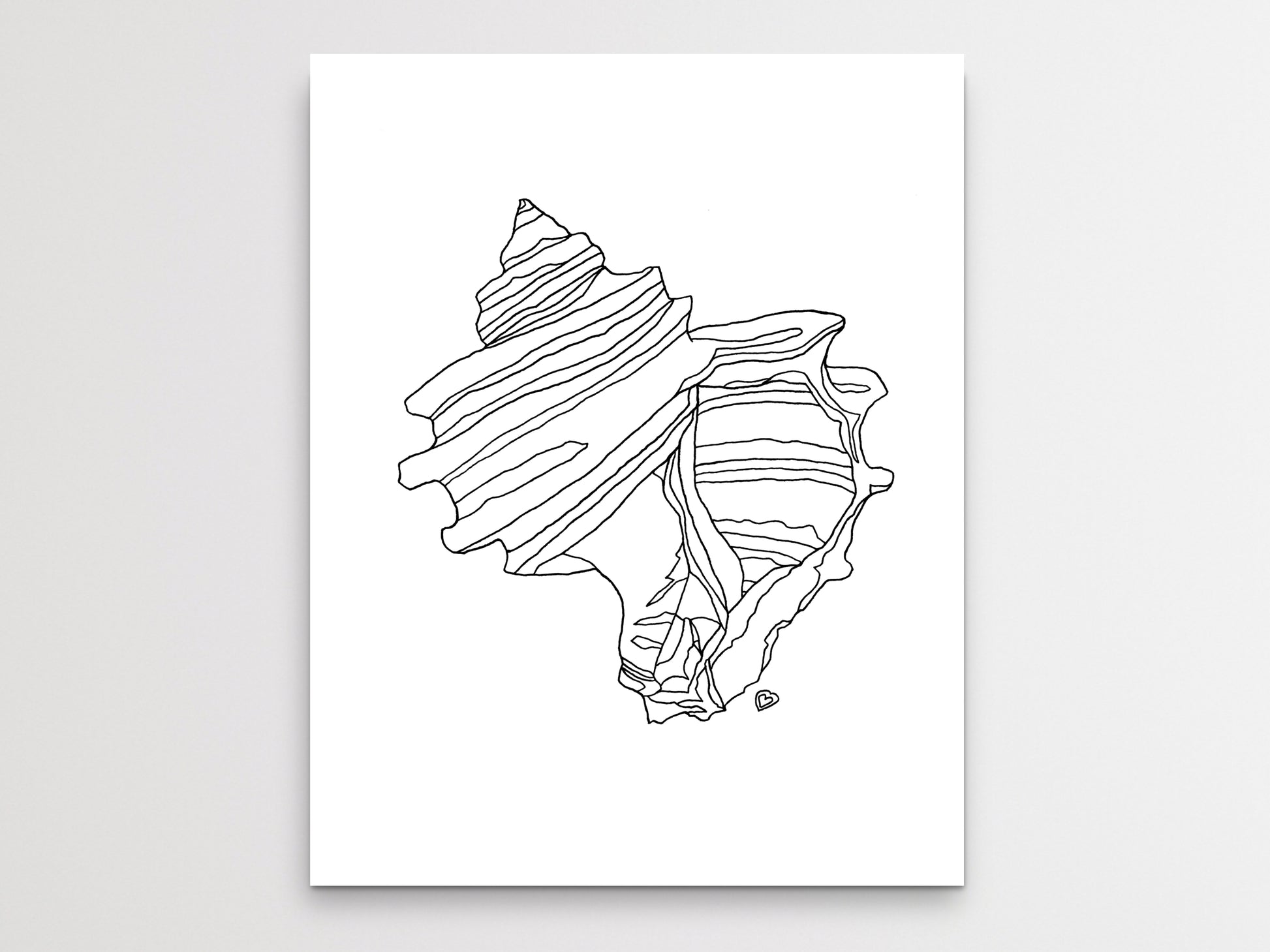 Maryland State Symbol Ecphora Gardnerae State Fossil Art. Shell Art. An ink art print of an Ecphora Gardnerae Shell for your home, kitchen, dining room, study, den, living rom, office, kid's room, or nursery. A fine art print on archival matte paper.
