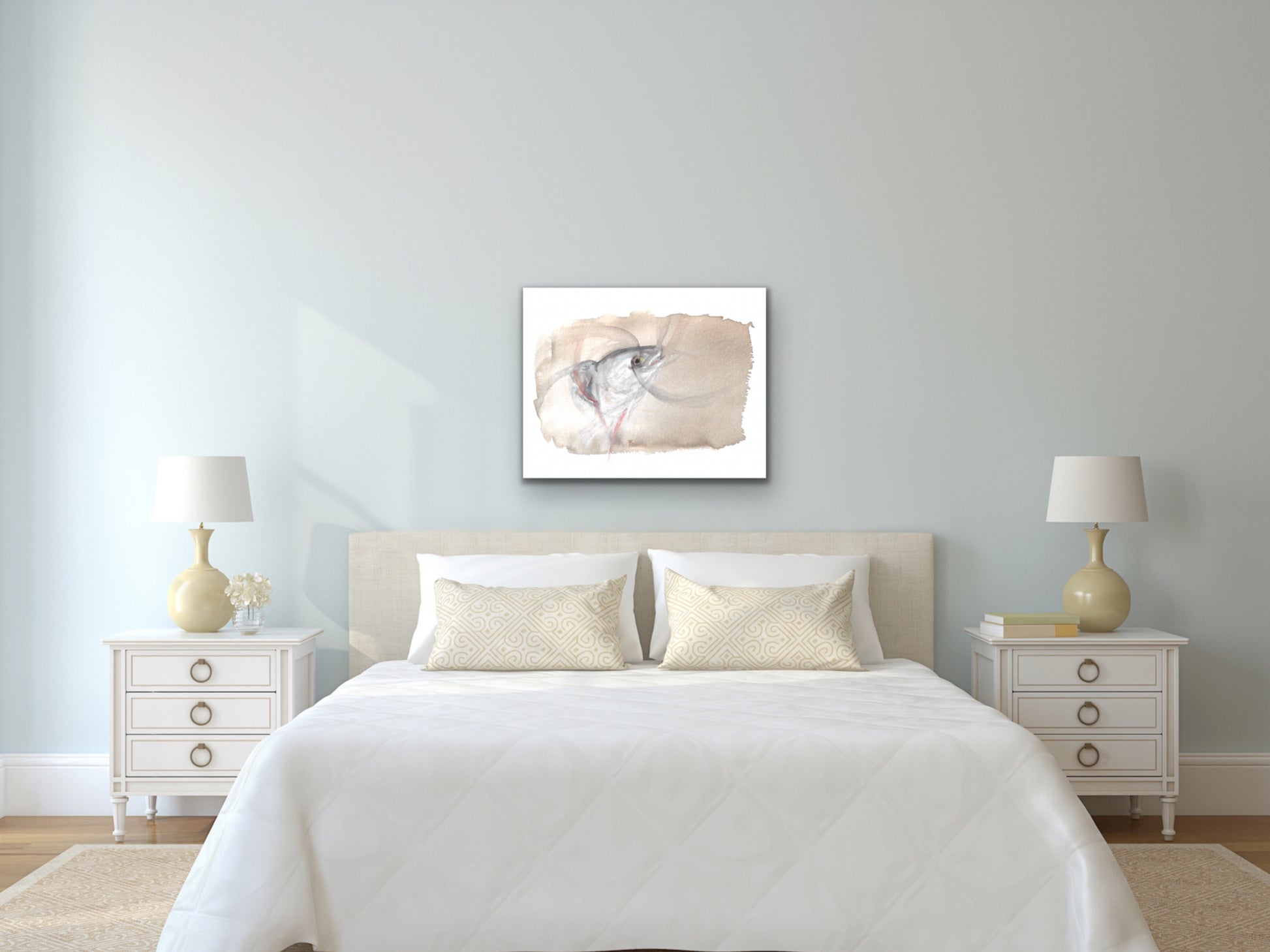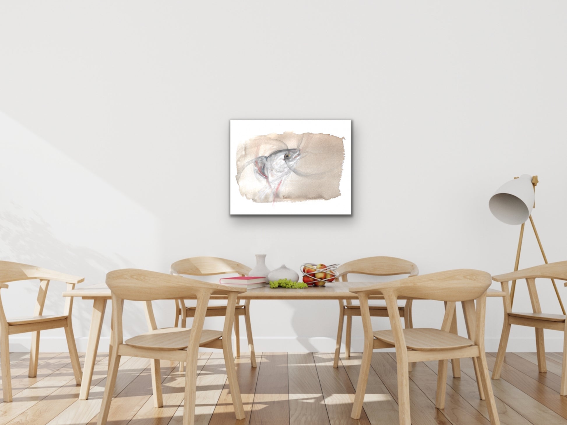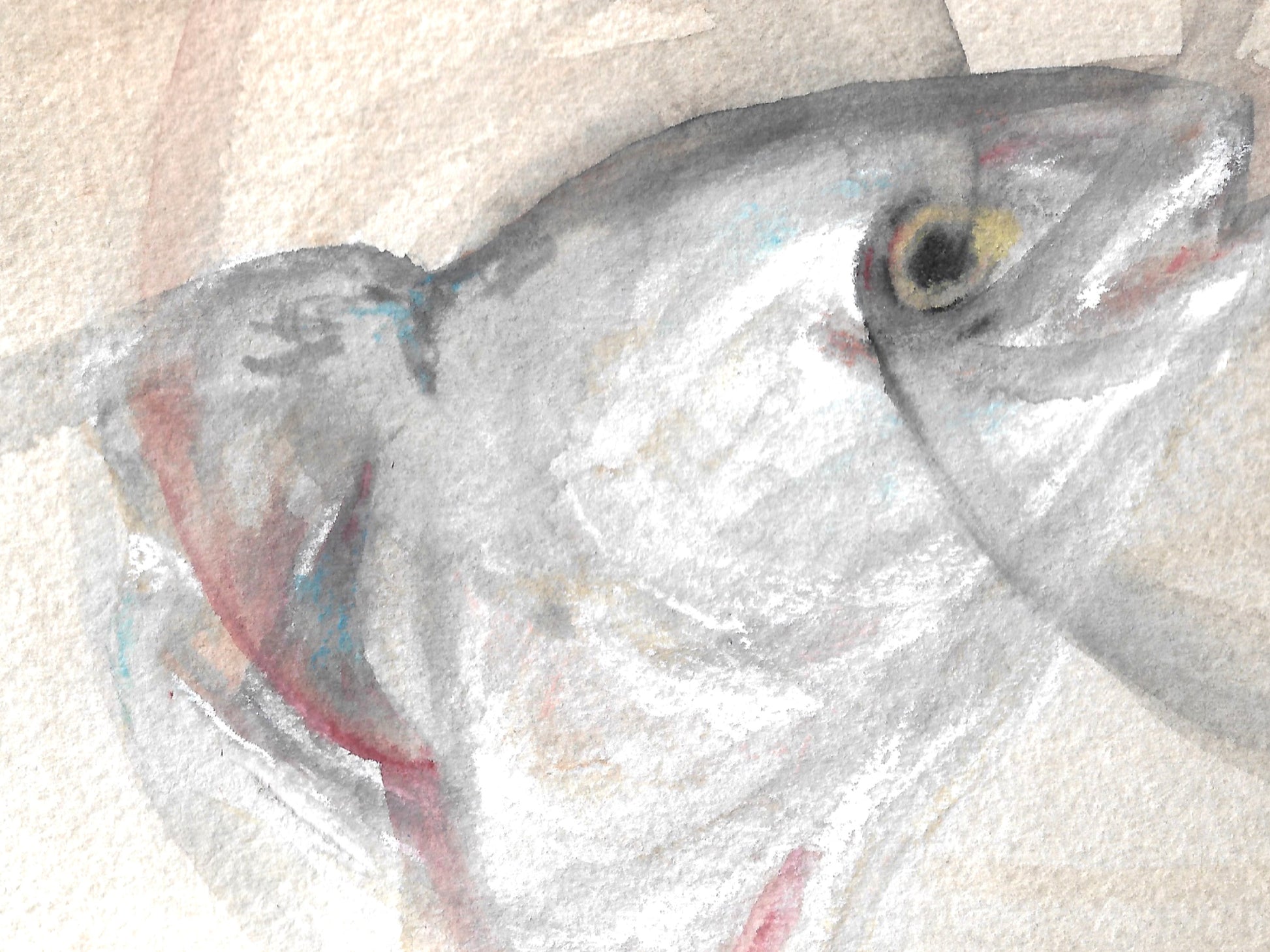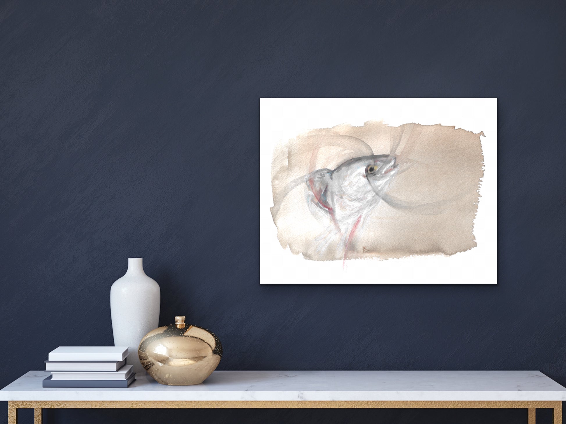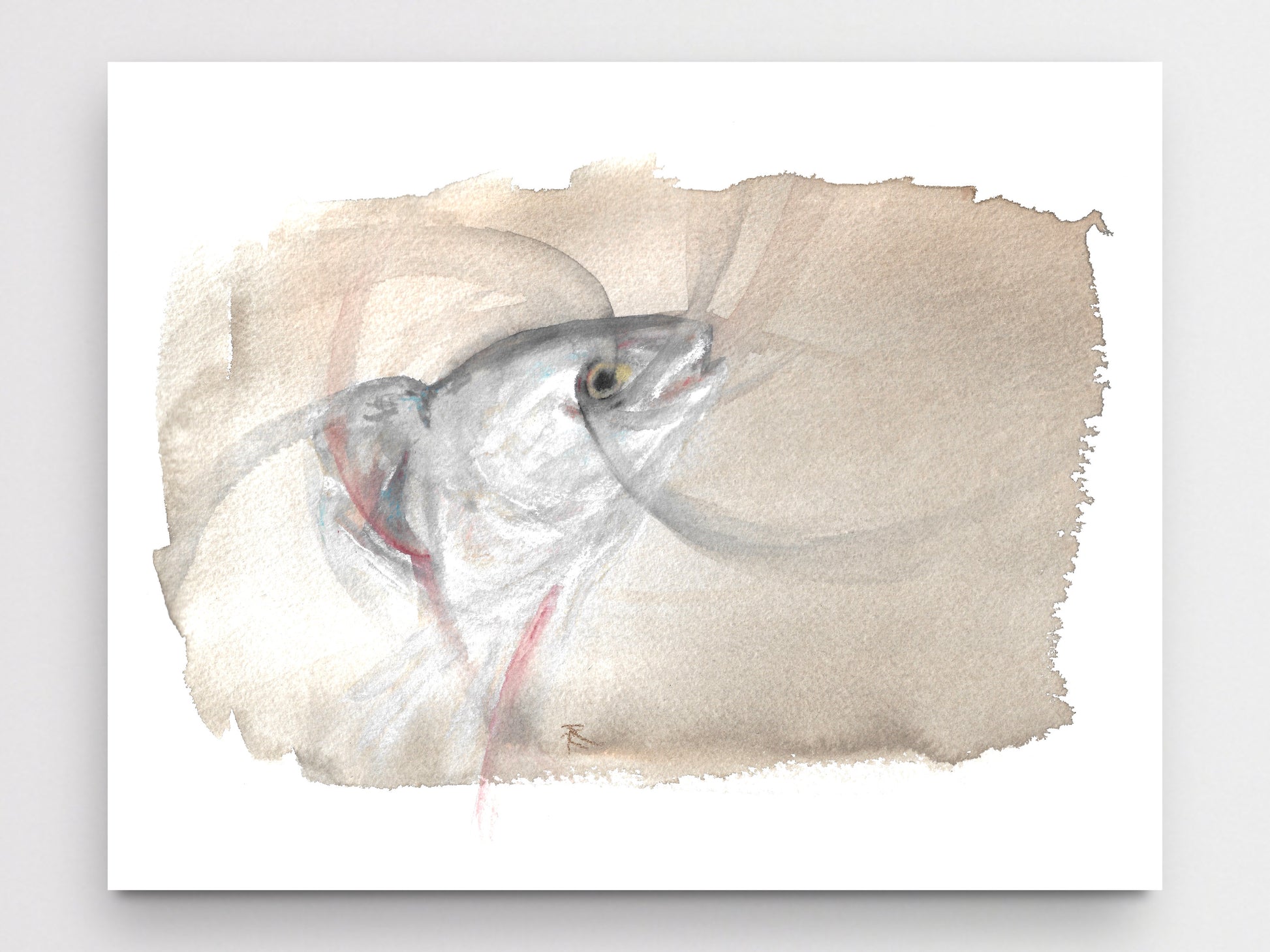 Fish head watercolor and charcoal art print for your home, living room, den, study, kitchen, dining room, nursery, or office. A fine art print on archival matte paper.