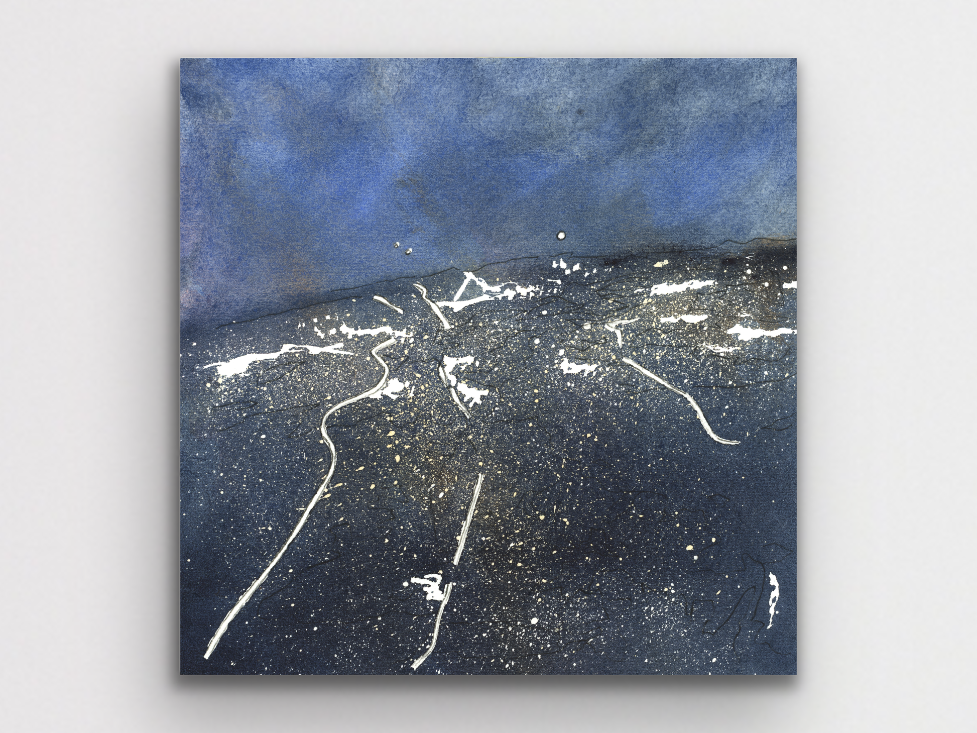 Night Sky Watercolor and Ink Print for your home, kitchen, dining room, study, den, living rom, office, kid's room, or nursery. A fine art print on archival matte paper.