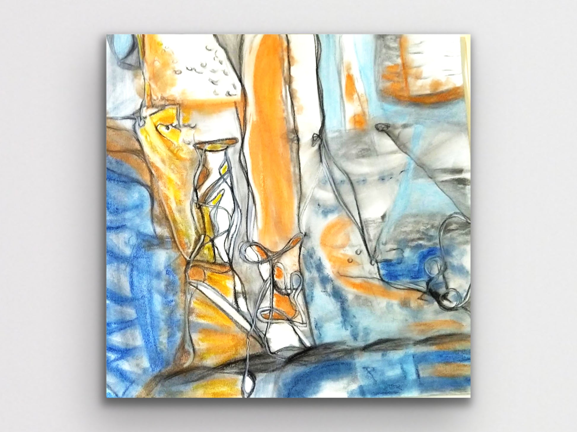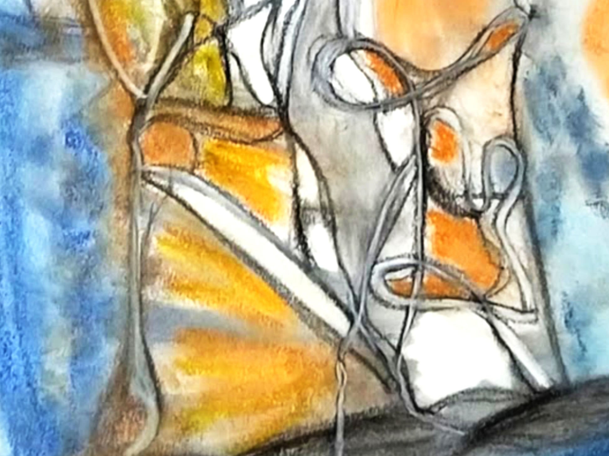 Orange and Blue Charcoal and Pastel by Phylinda Moore.
