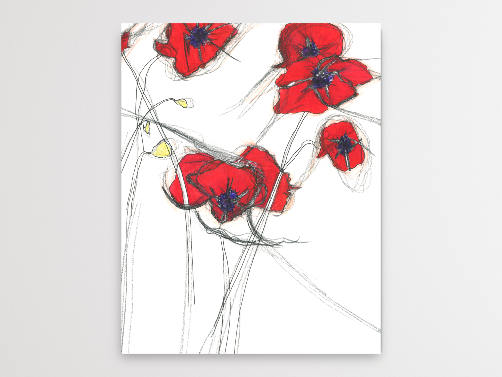 Poppies Watercolor, Charcoal, and Ink art print for your home, living room, den, study, kitchen, dining room, nursery, or office. A fine art print on archival matte paper.