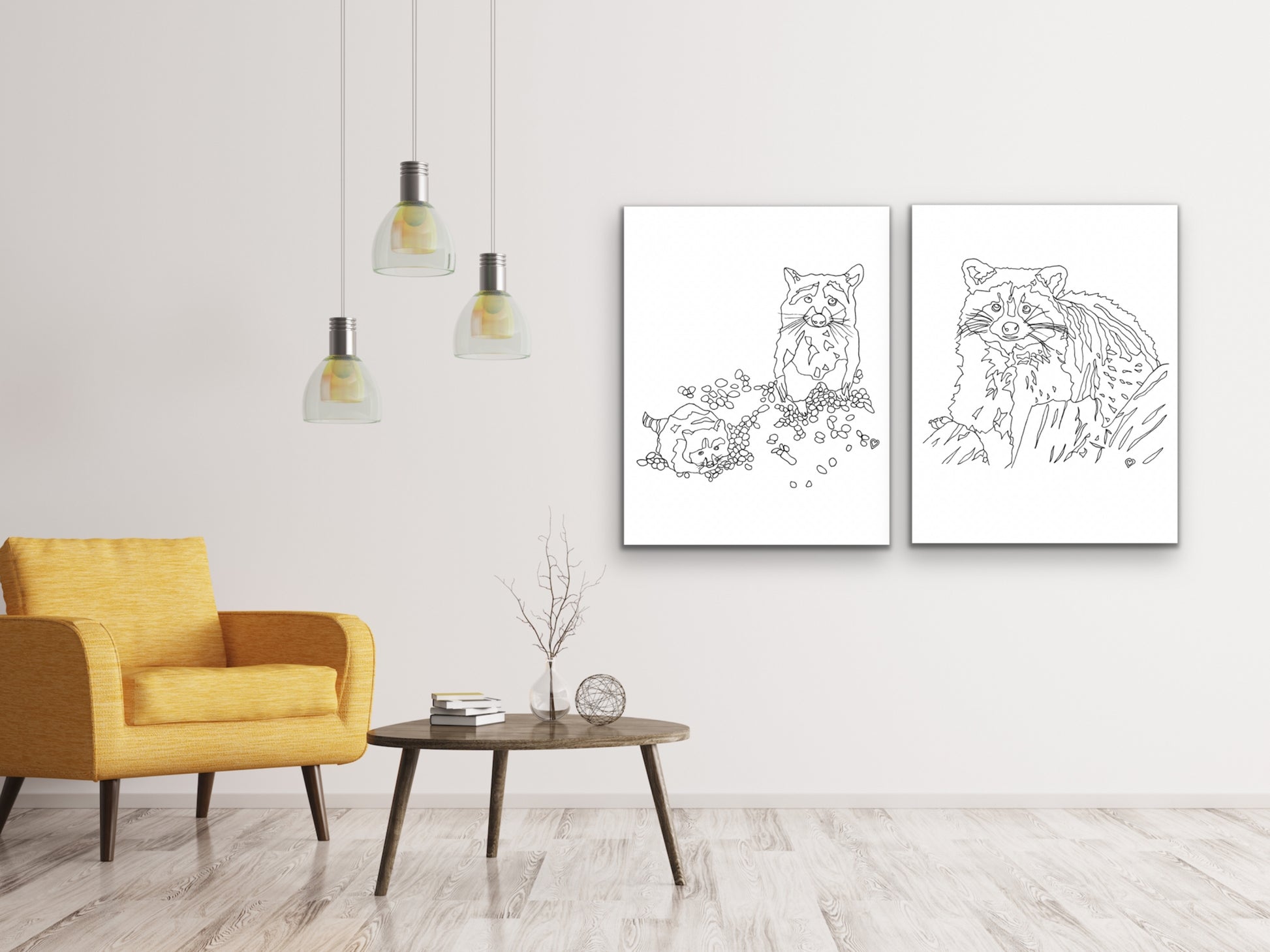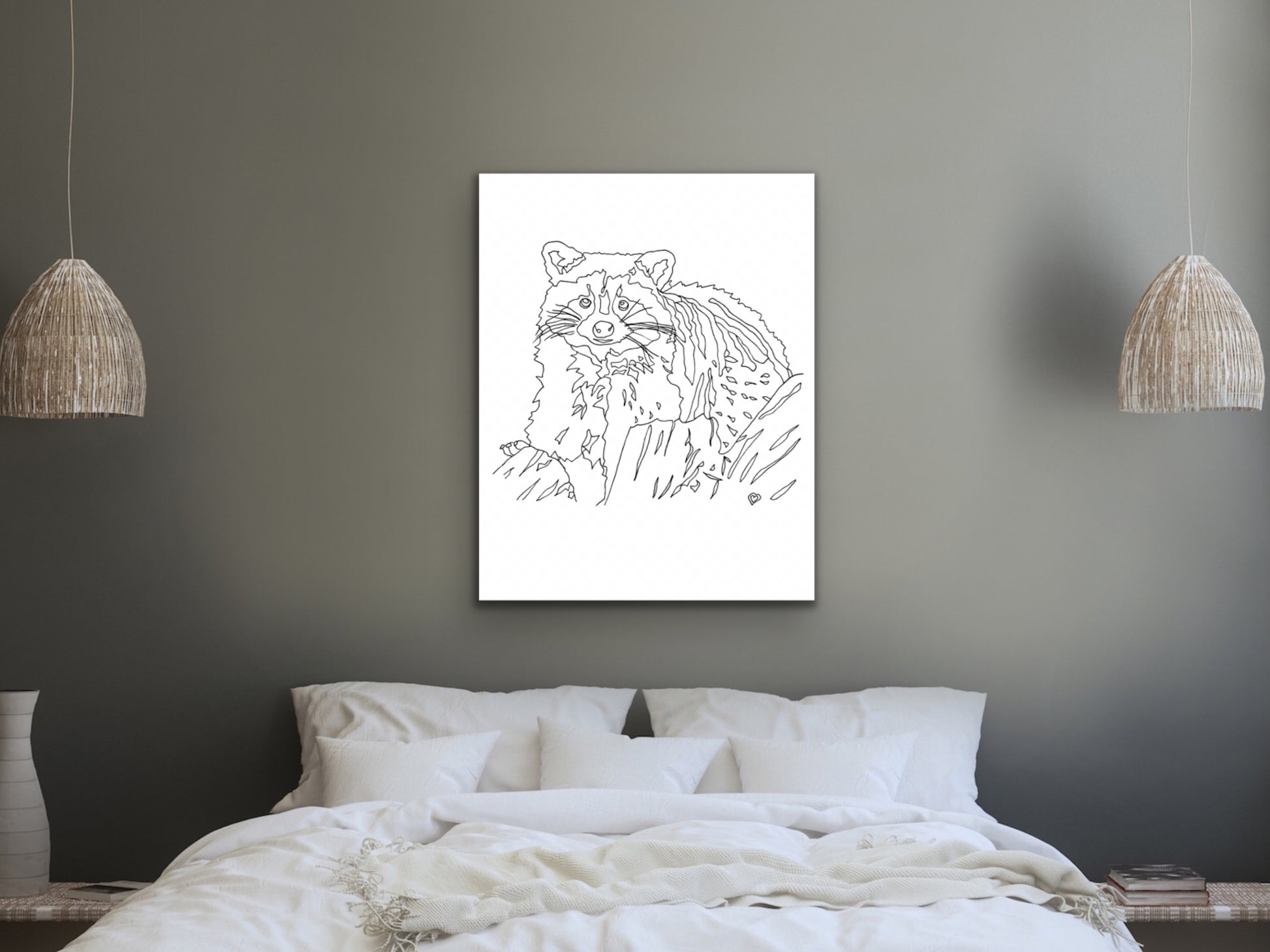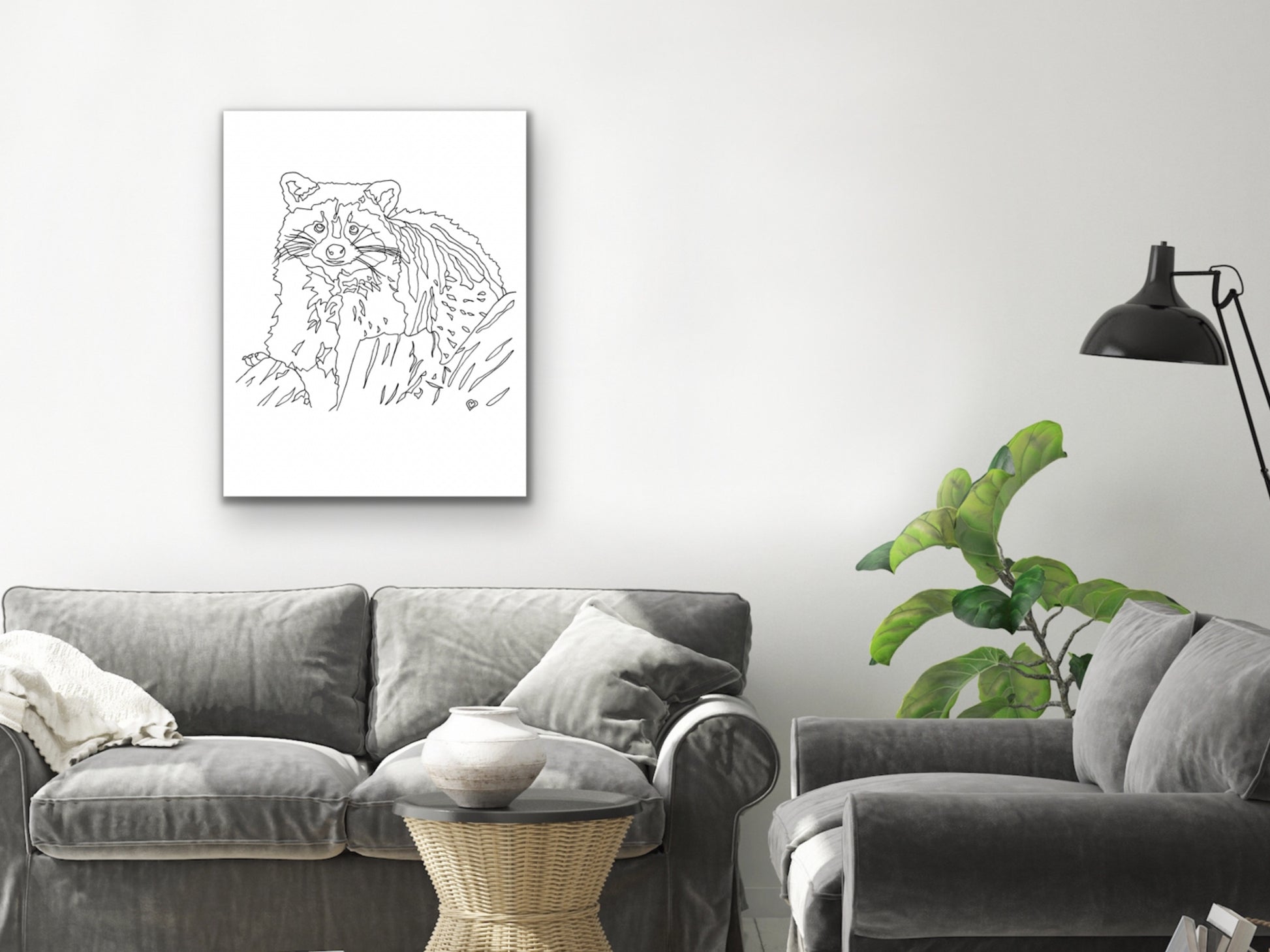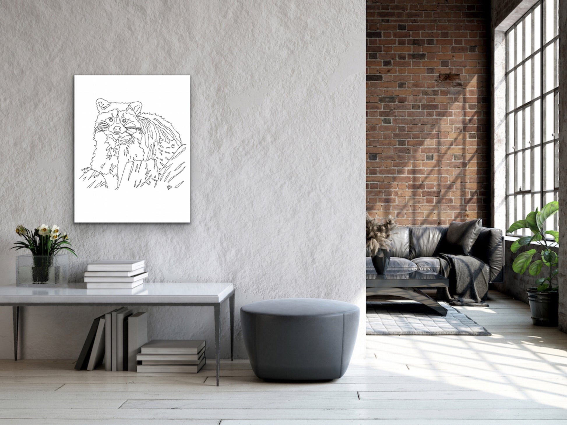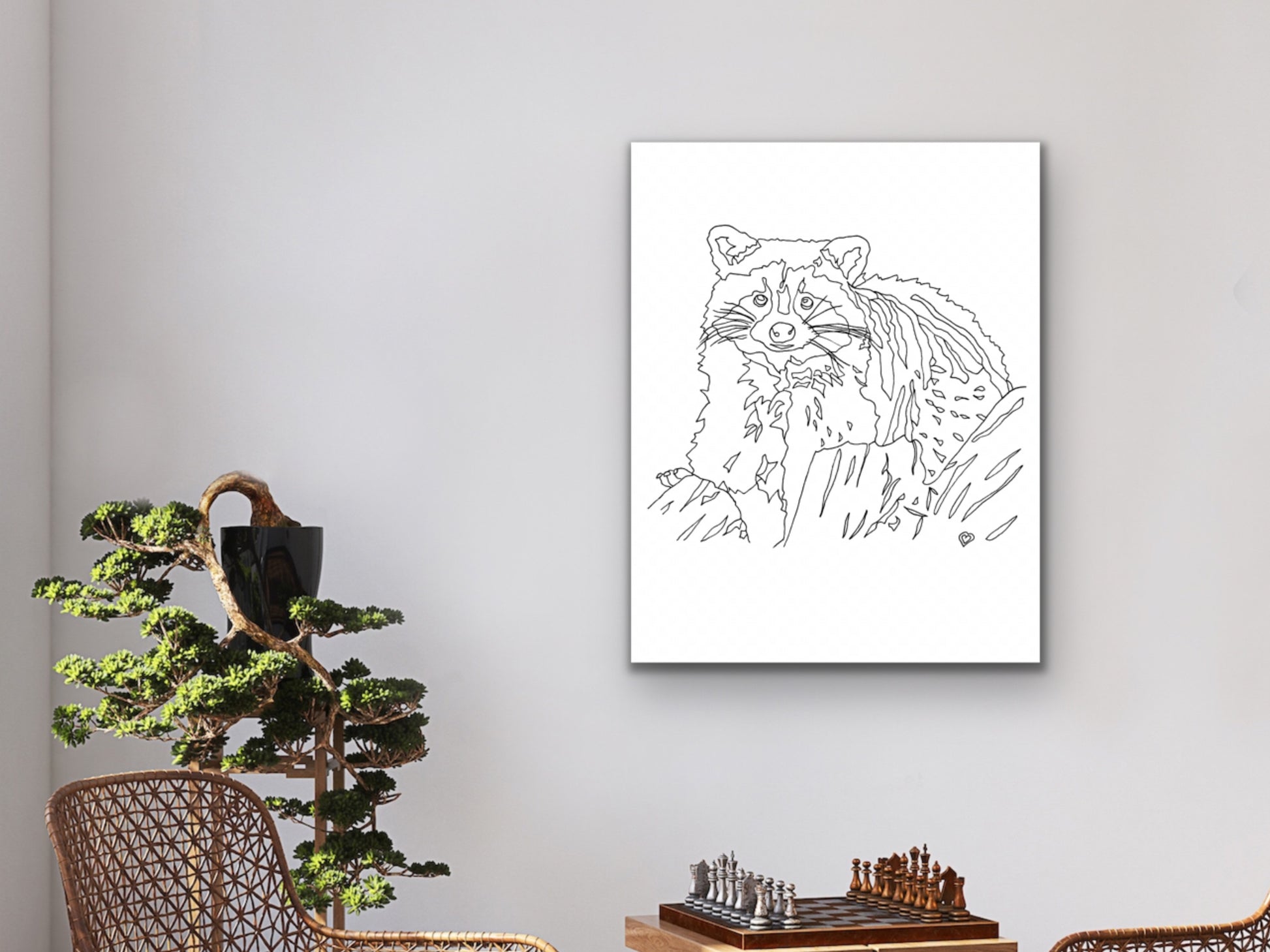 Raccoon Wall Art. An ink line art art print of a Raccoon for your home, kitchen, dining room, study, den, living rom, office, kid's room, or nursery. A fine art print on archival matte paper.