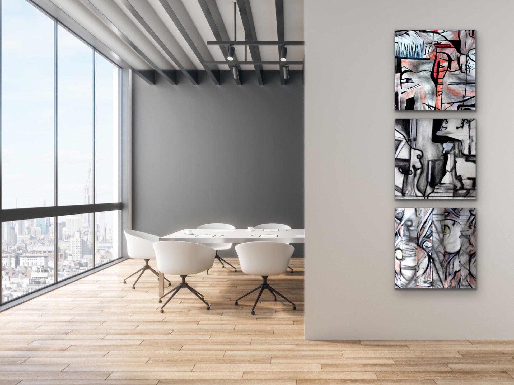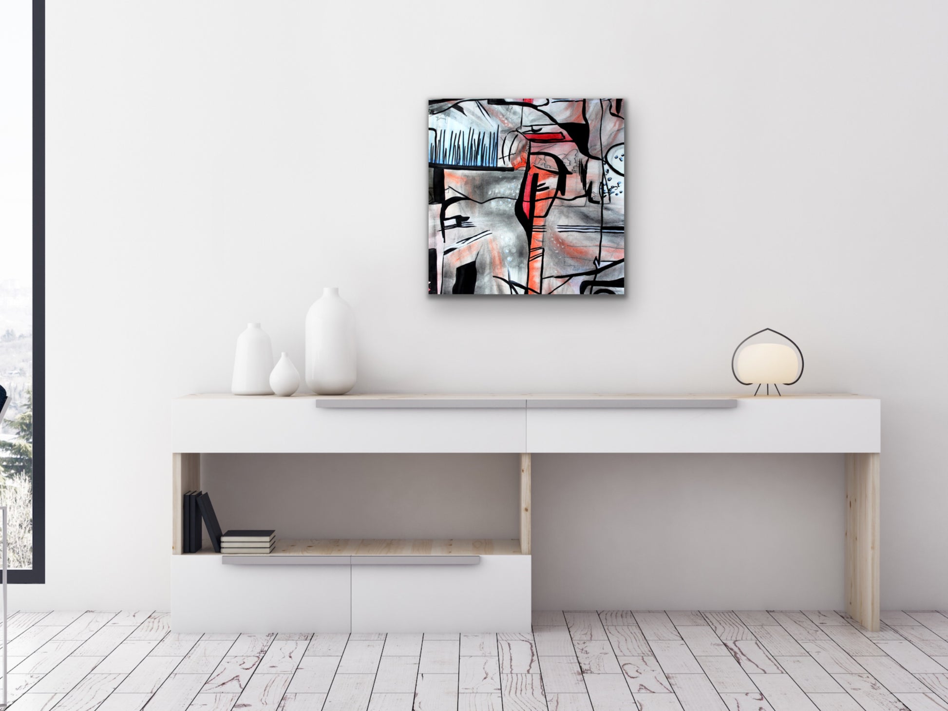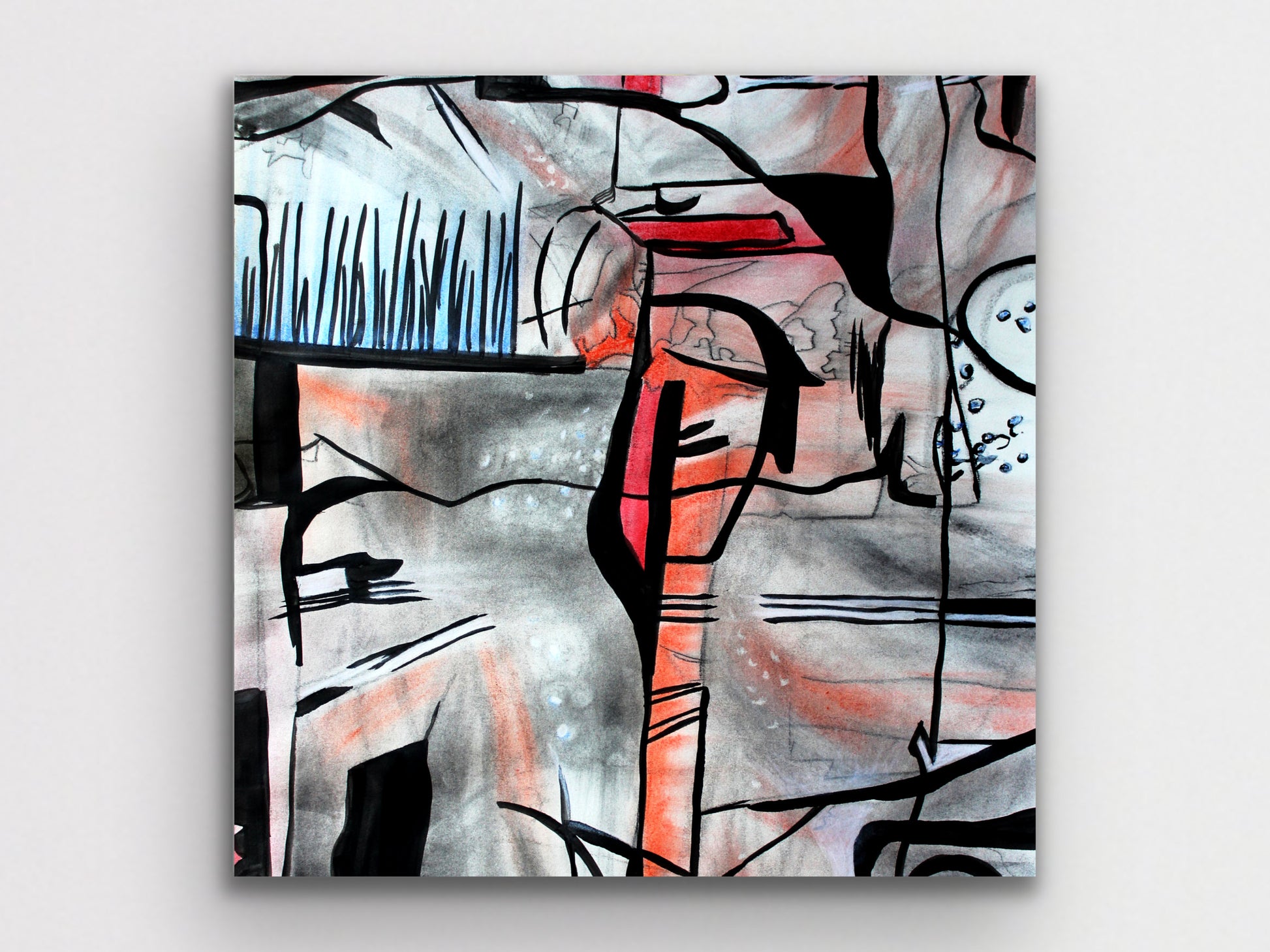 A red and blue charcoal and pastel art print for your home, kitchen, dining room, study, den, living rom, office, kid's room, or nursery. A fine art print on archival matte paper.