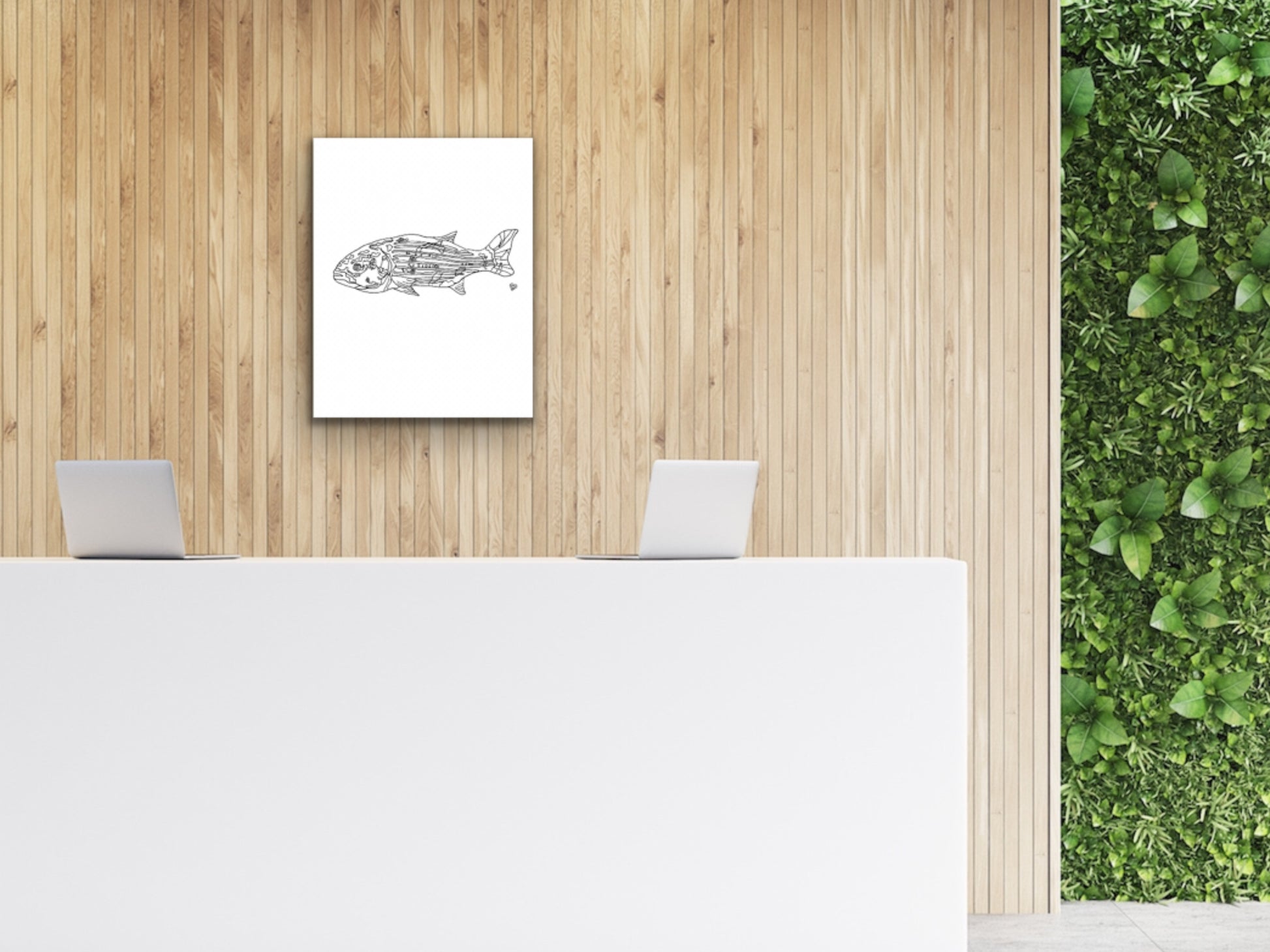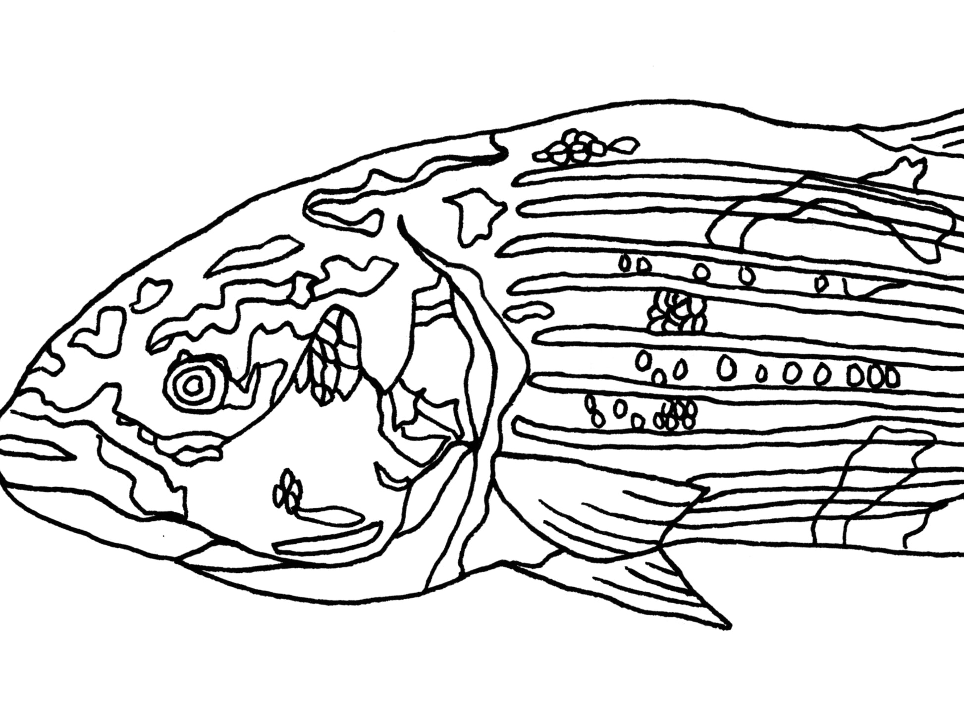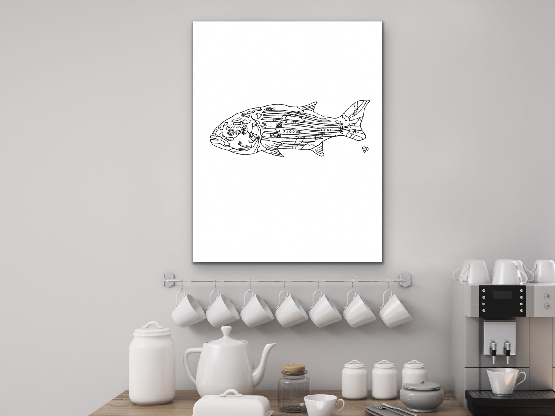 Maryland Rockfish Art. An ink art print of a Rockfish Fish for your home, kitchen, dining room, study, den, living rom, office, kid's room, or nursery. A fine art print on archival matte paper.