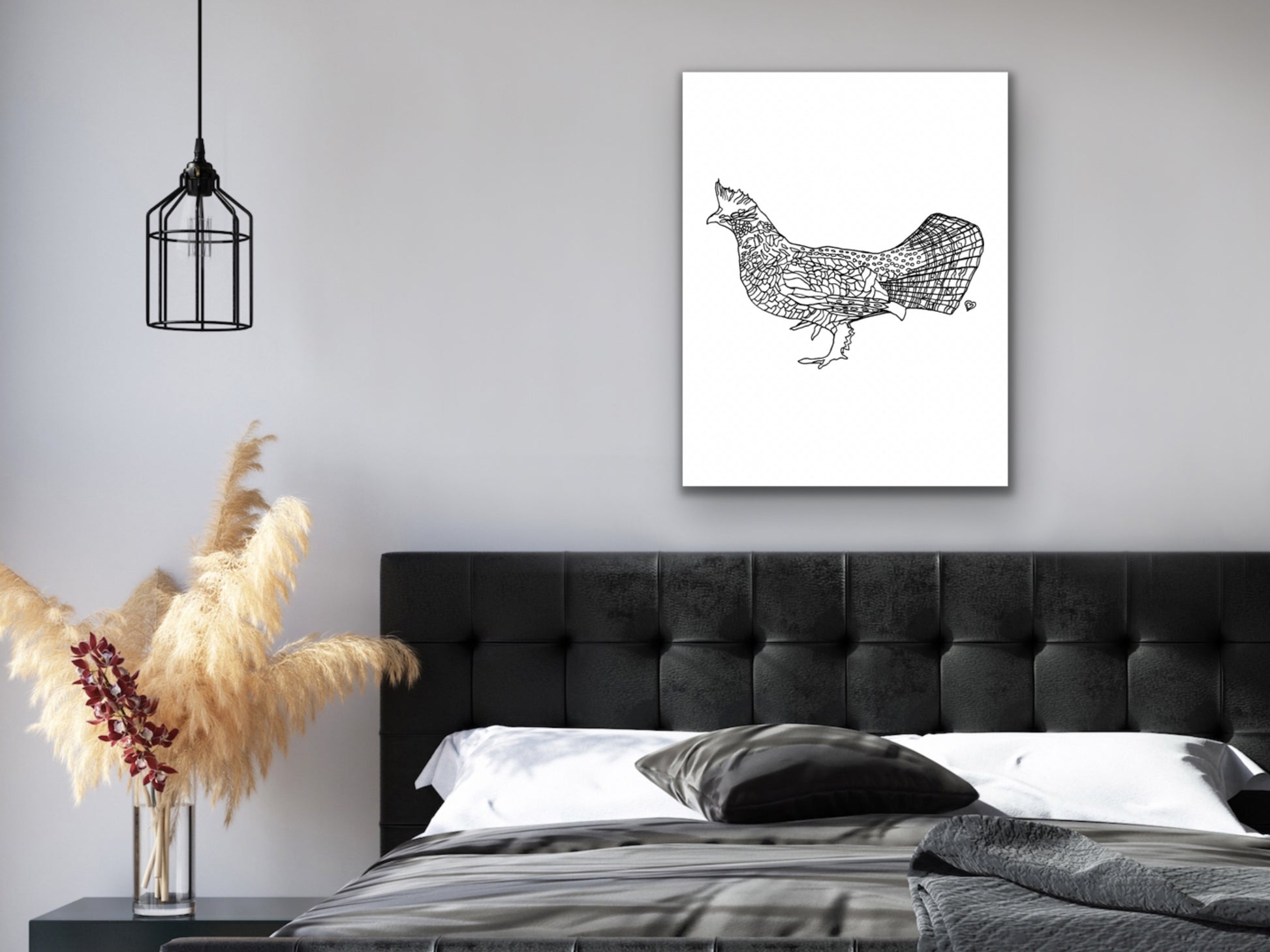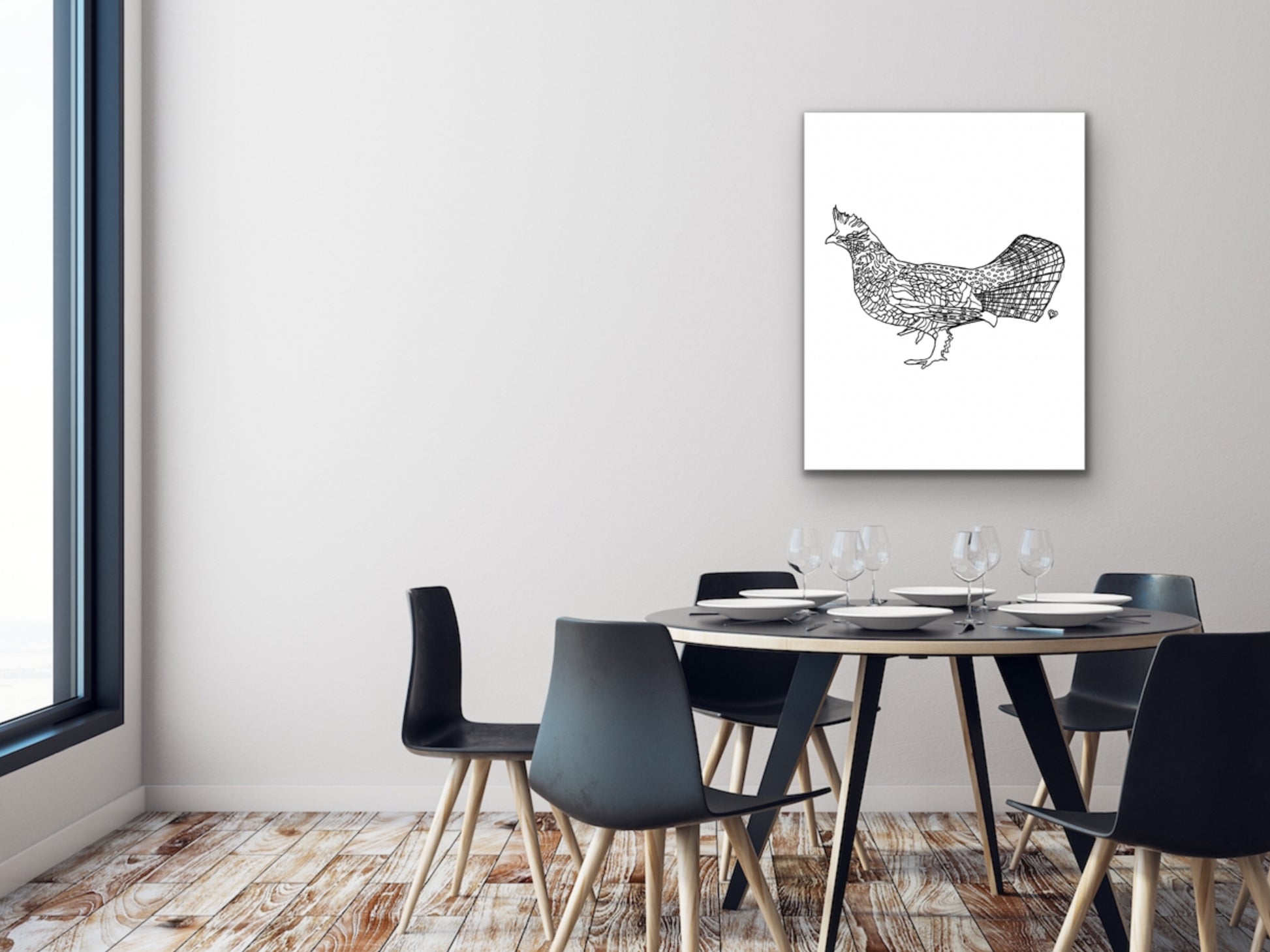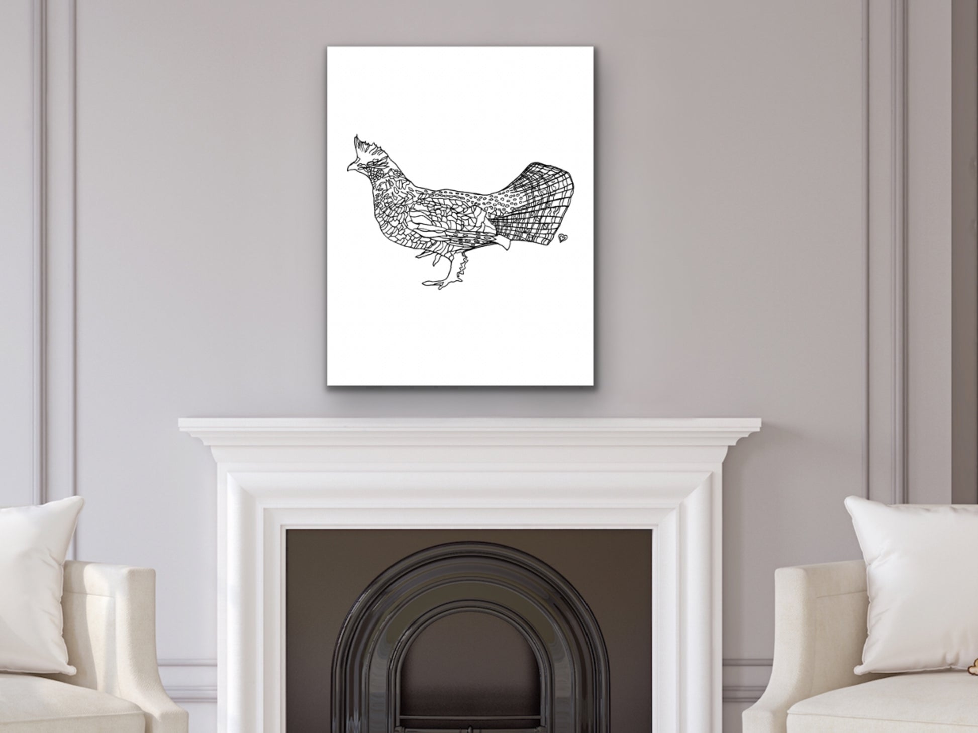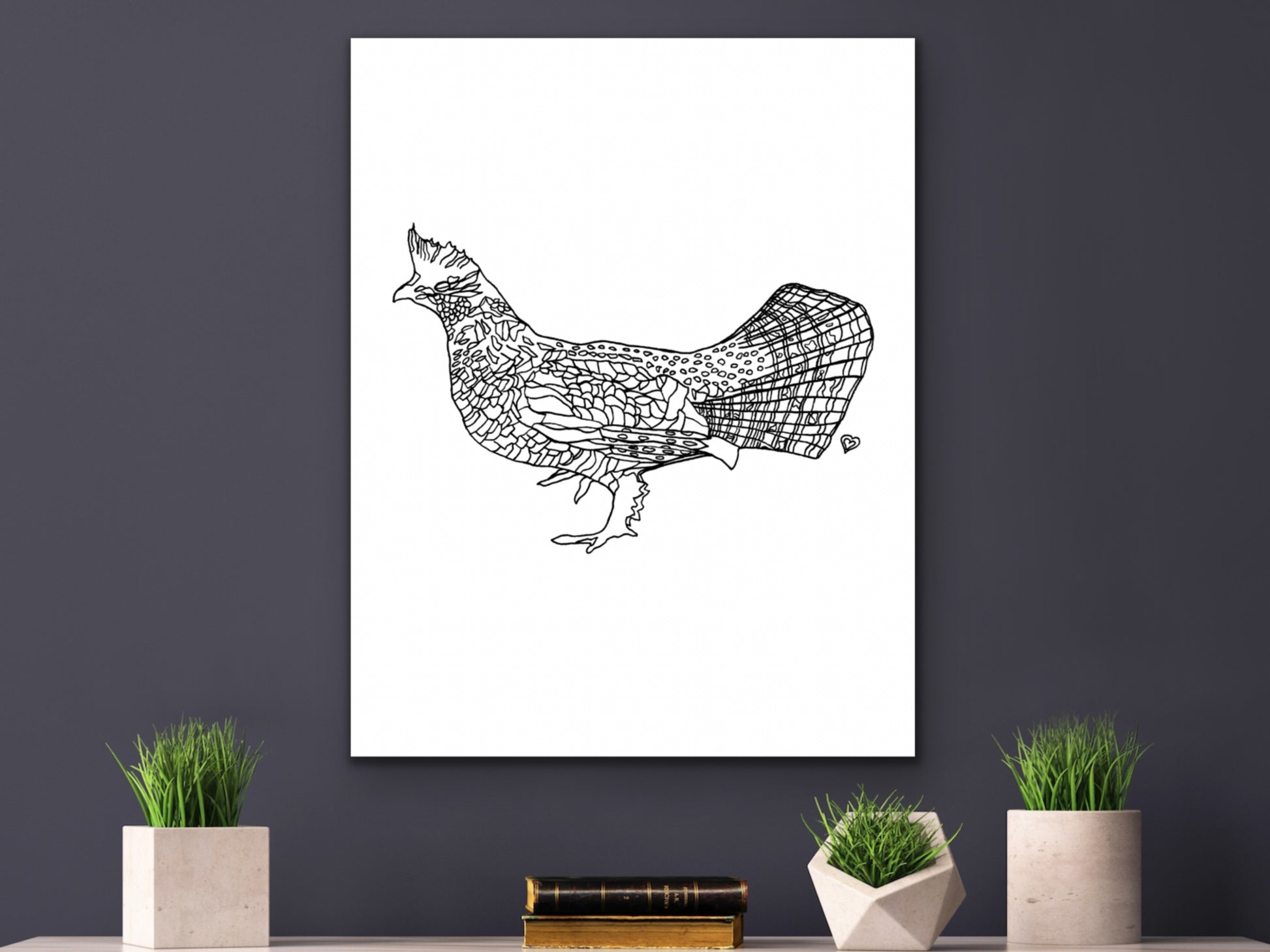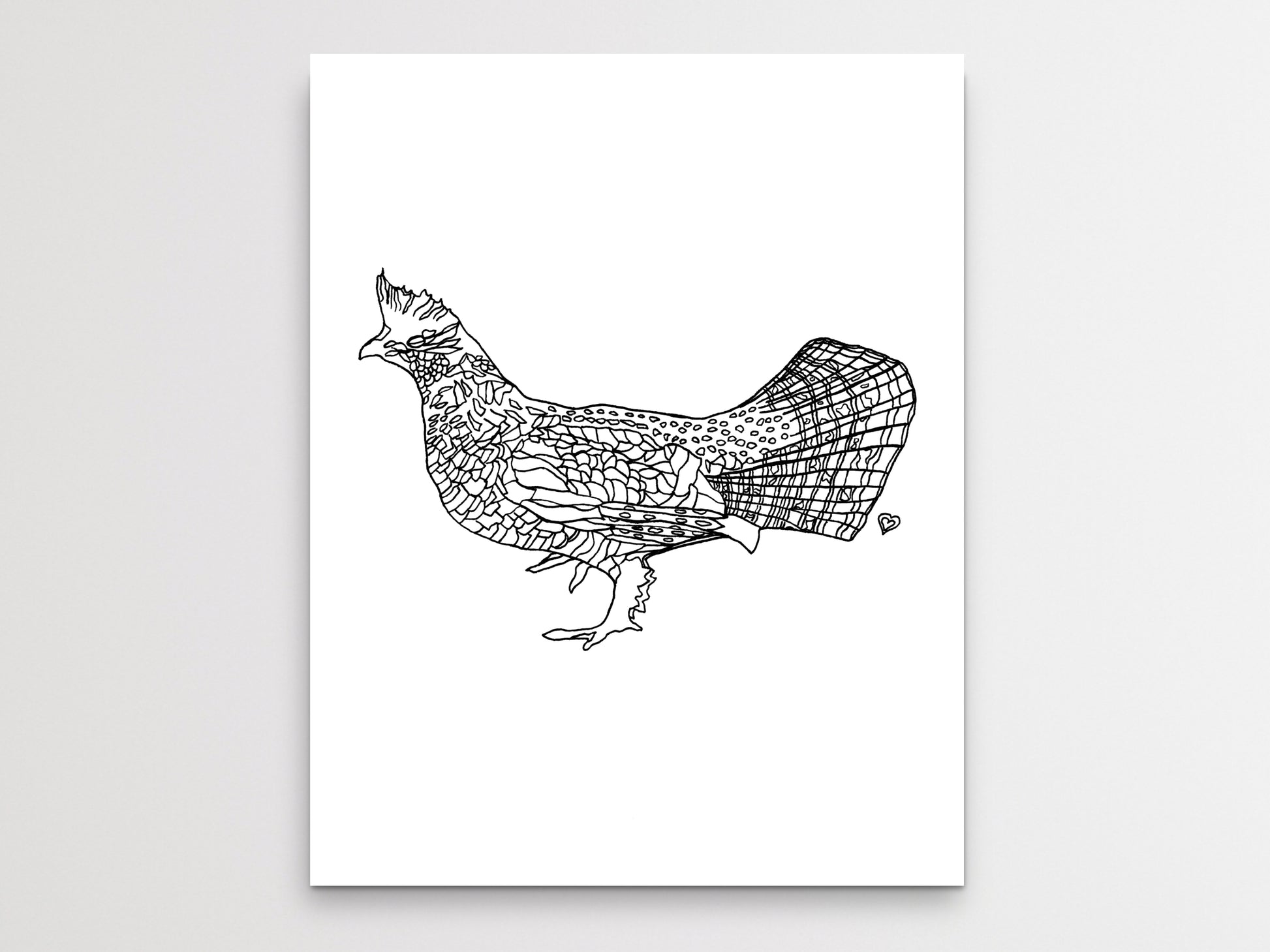 Pennsylvania State Symbol Ruffed Grouse Wall Art. An ink line art art print of a Ruffed Grouse Bird for your home, kitchen, dining room, study, den, living rom, office, kid's room, or nursery. A fine art print on archival matte paper.