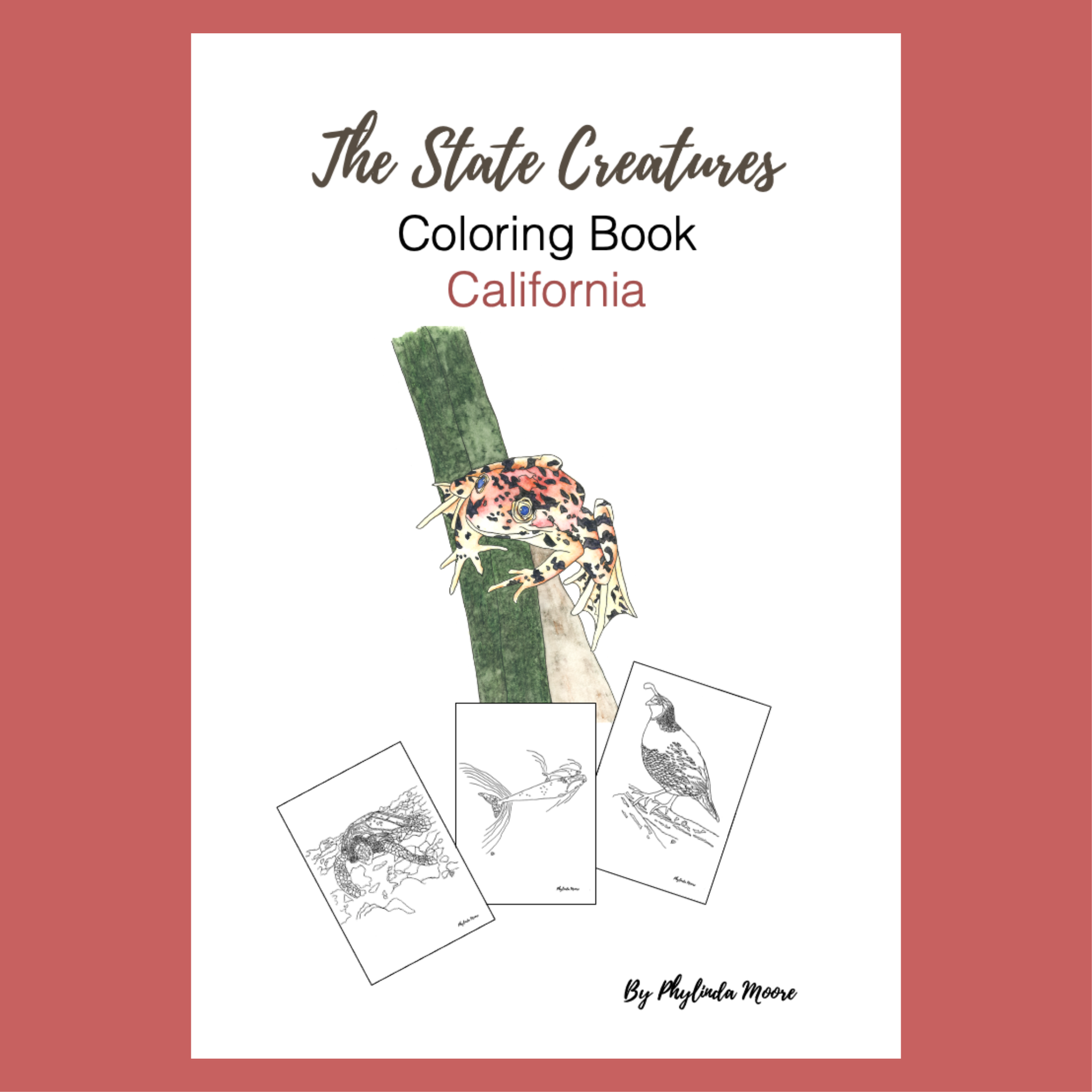 10 state creatures of California make up this lovingly created coloring book. Learn, color, and enjoy! By artist Phylinda