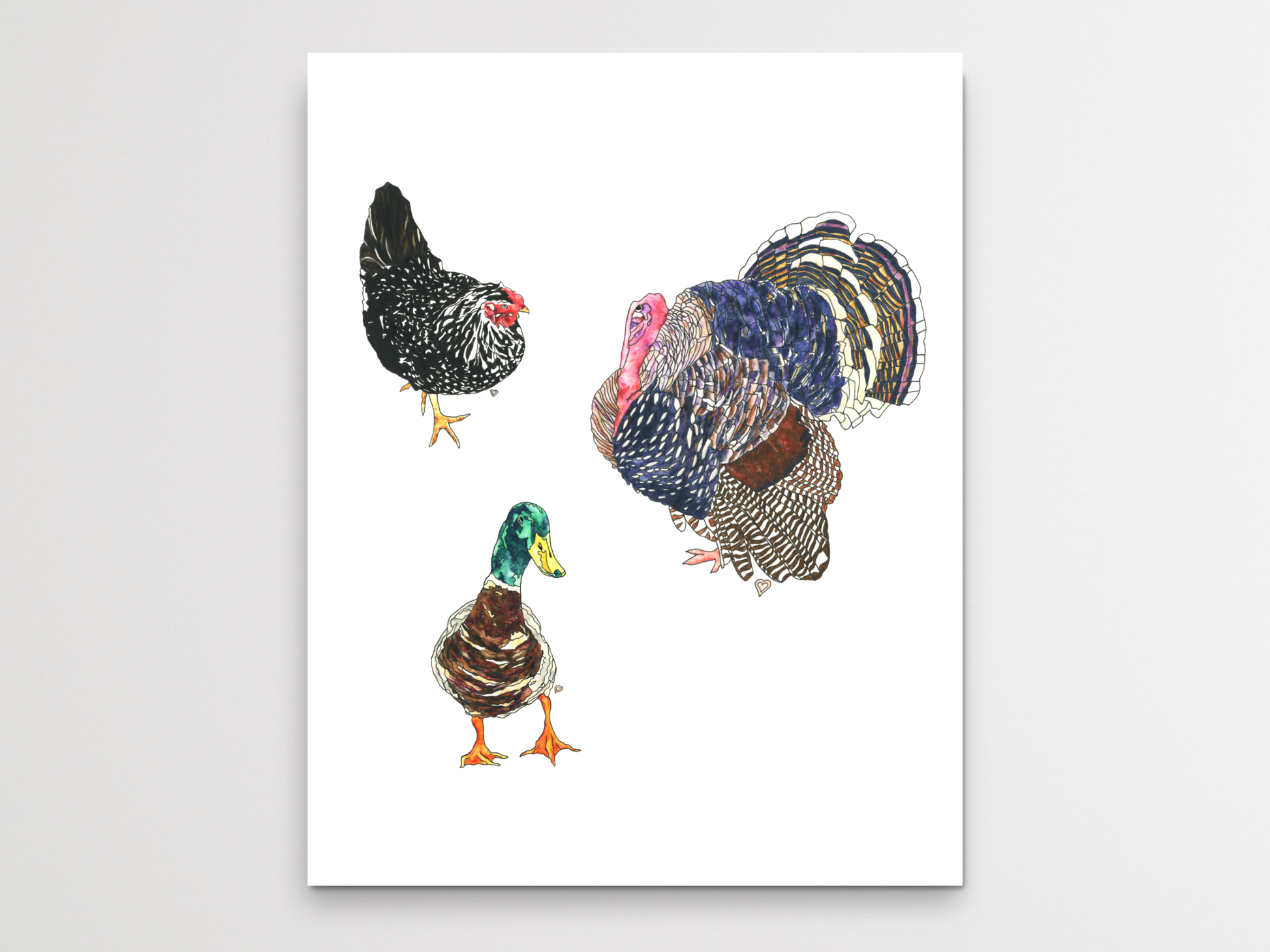 Turducken Watercolor and Ink art print for your home, living room, den, study, kitchen, dining room, nursery, or office. A fine art print on archival matte paper.