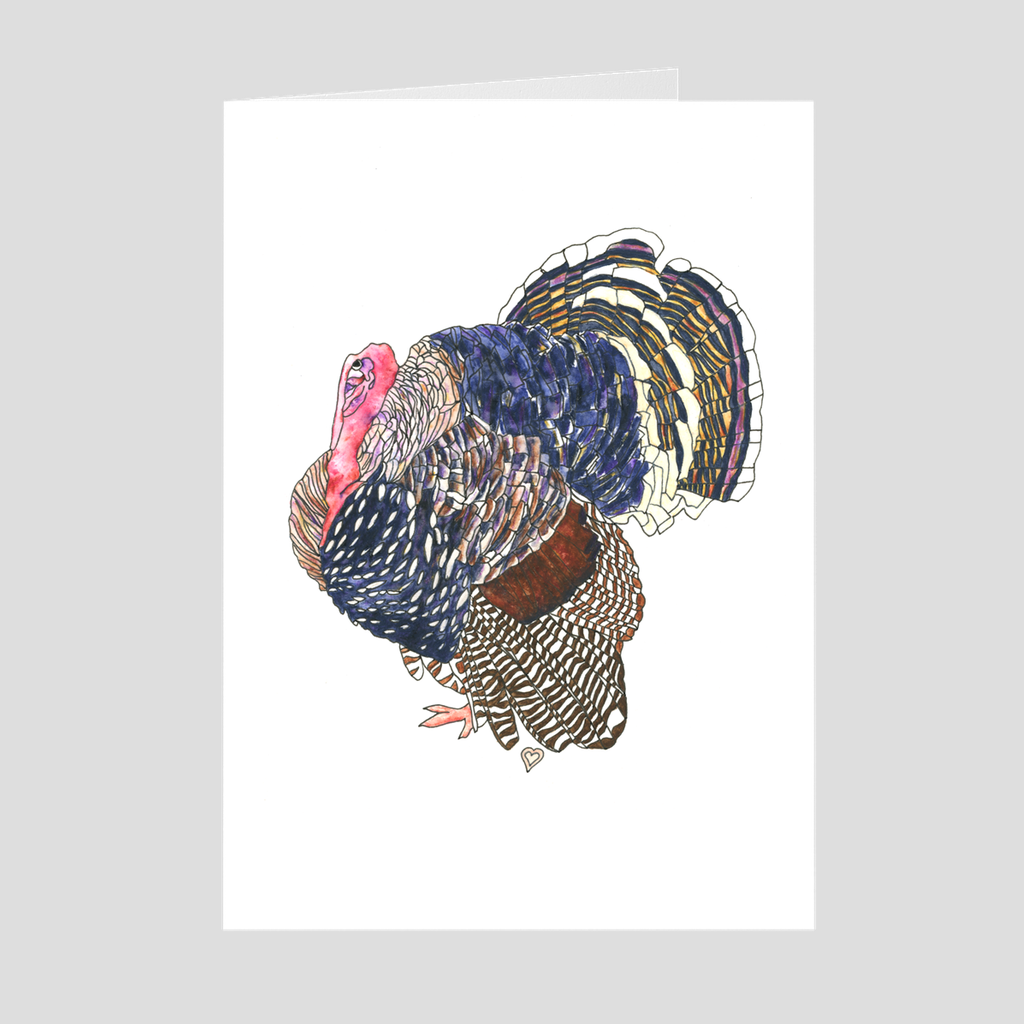 This Turkey Greeting Card is blank inside ready to be inscribed and sent to your loved one. Images show front and back of the card. This high quality 5 x 7 paper card comes pre-folded, with a white envelope. Works well with regular ballpoint pens after a short drying time. Card is folded intentionally offset to allow a slight overhang so the cards can be easily opened.Current production time: Estimated production time approx. 6 days. Shipped USPS First Class PKG with tracking.Comes packed in cello sleeve and flat mailer.For personal use only. For commercial or licensing inquiries please contact me. All image inspiration attributions follow licensing and copyright laws for usage. Image inspiration attribution: Wild Turkey: State Game Bird, "Wild Turkey" by Debarshi Ray is licensed under CC BY-SA 2.0