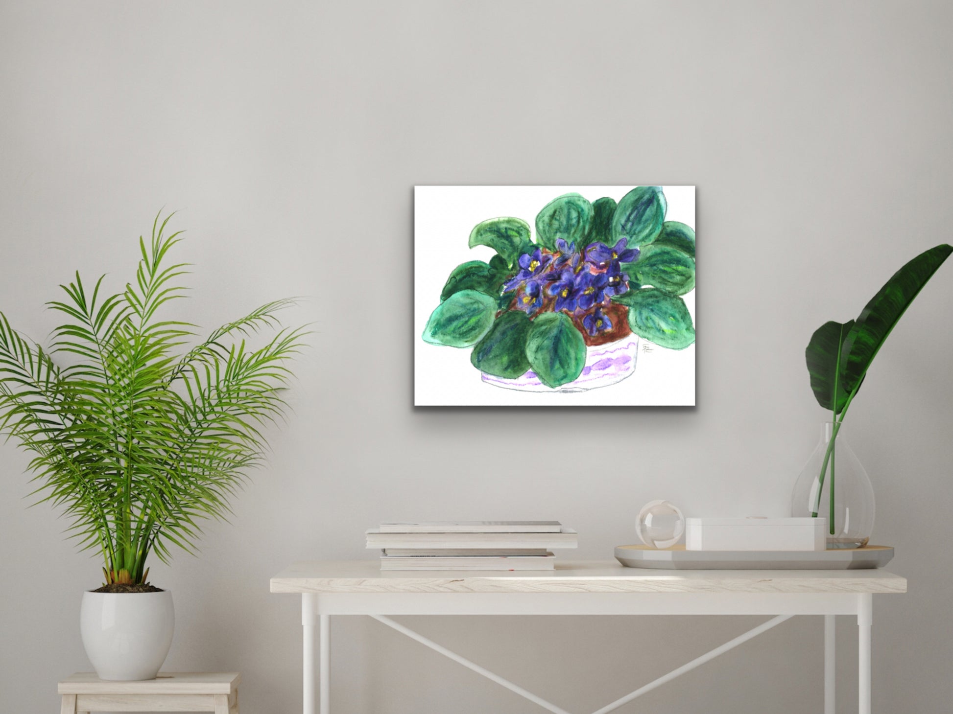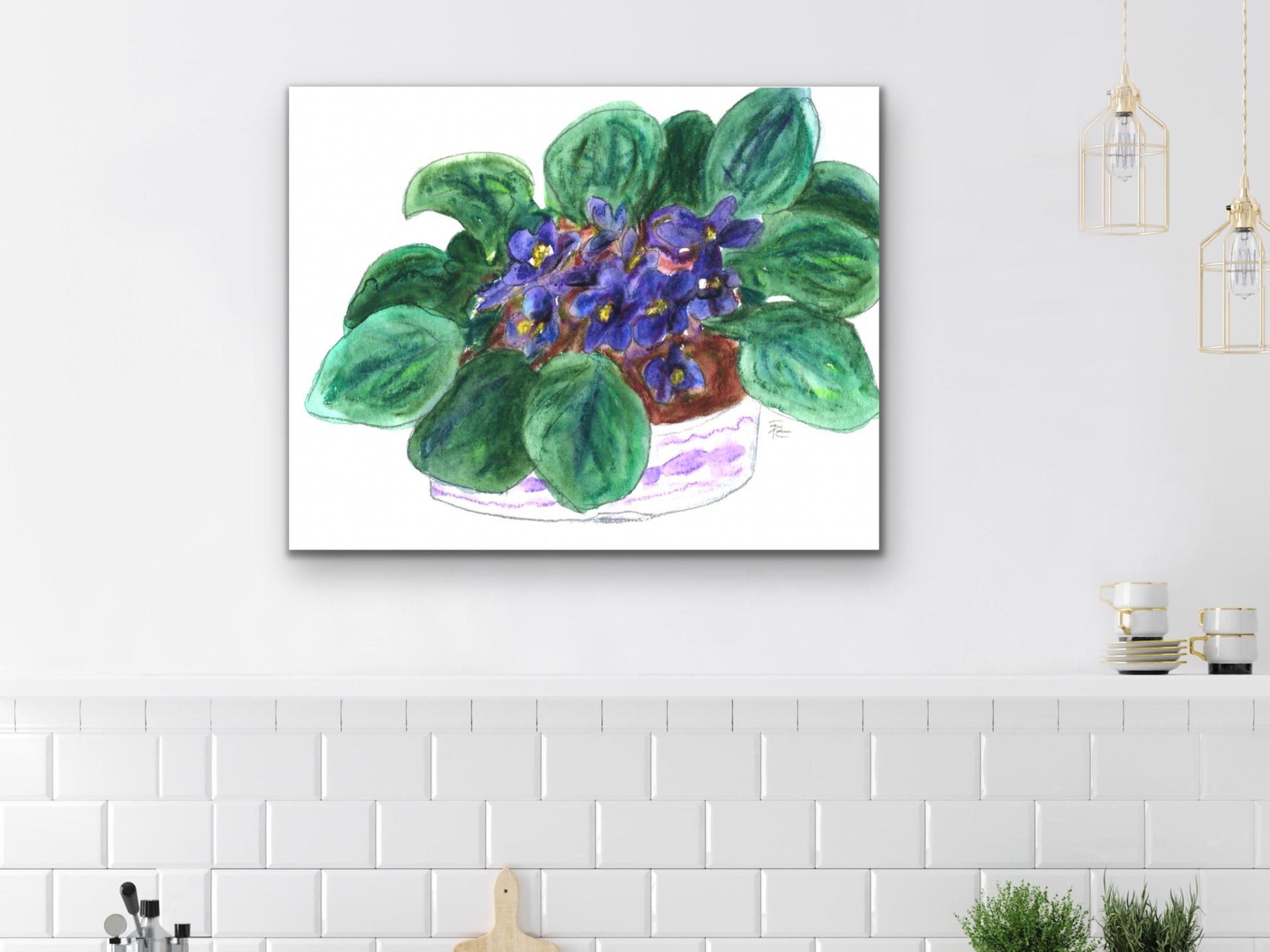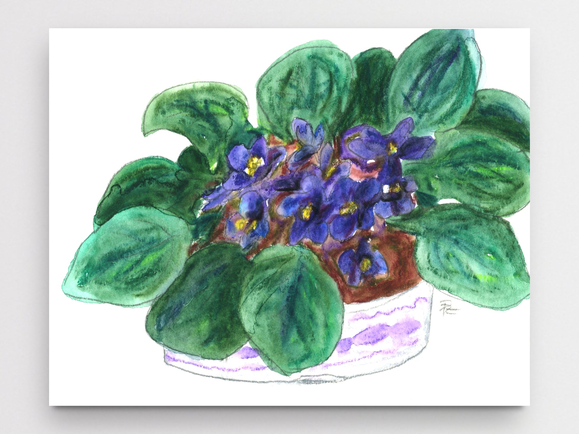 Violets watercolor art print for your home, living room, den, study, kitchen, dining room, nursery, or office. A fine art print on archival matte paper.