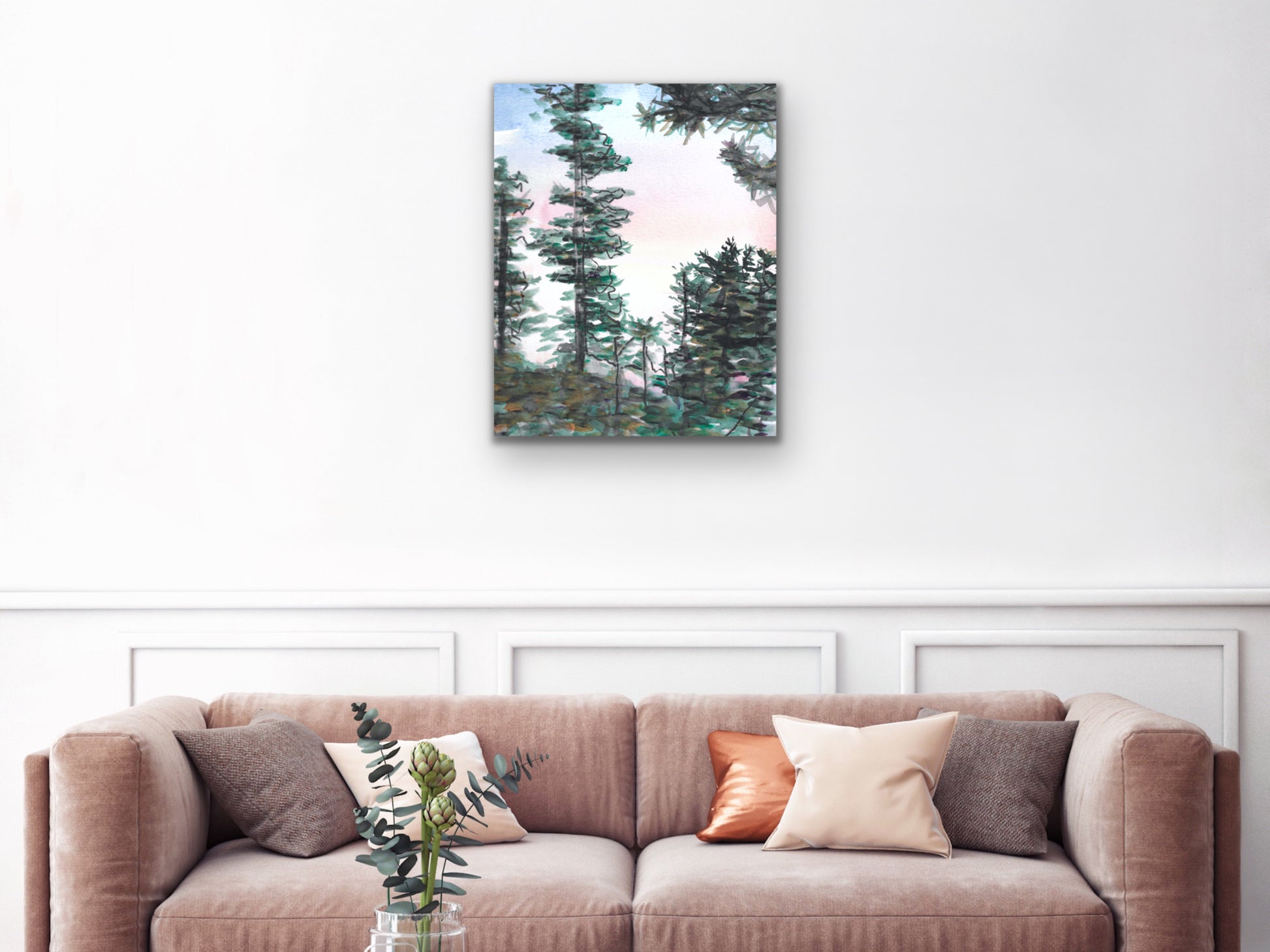 Watercolor and Ink Trees art print for your home, living room, den, study, kitchen, dining room, nursery, or office. A fine art print on archival matte paper.