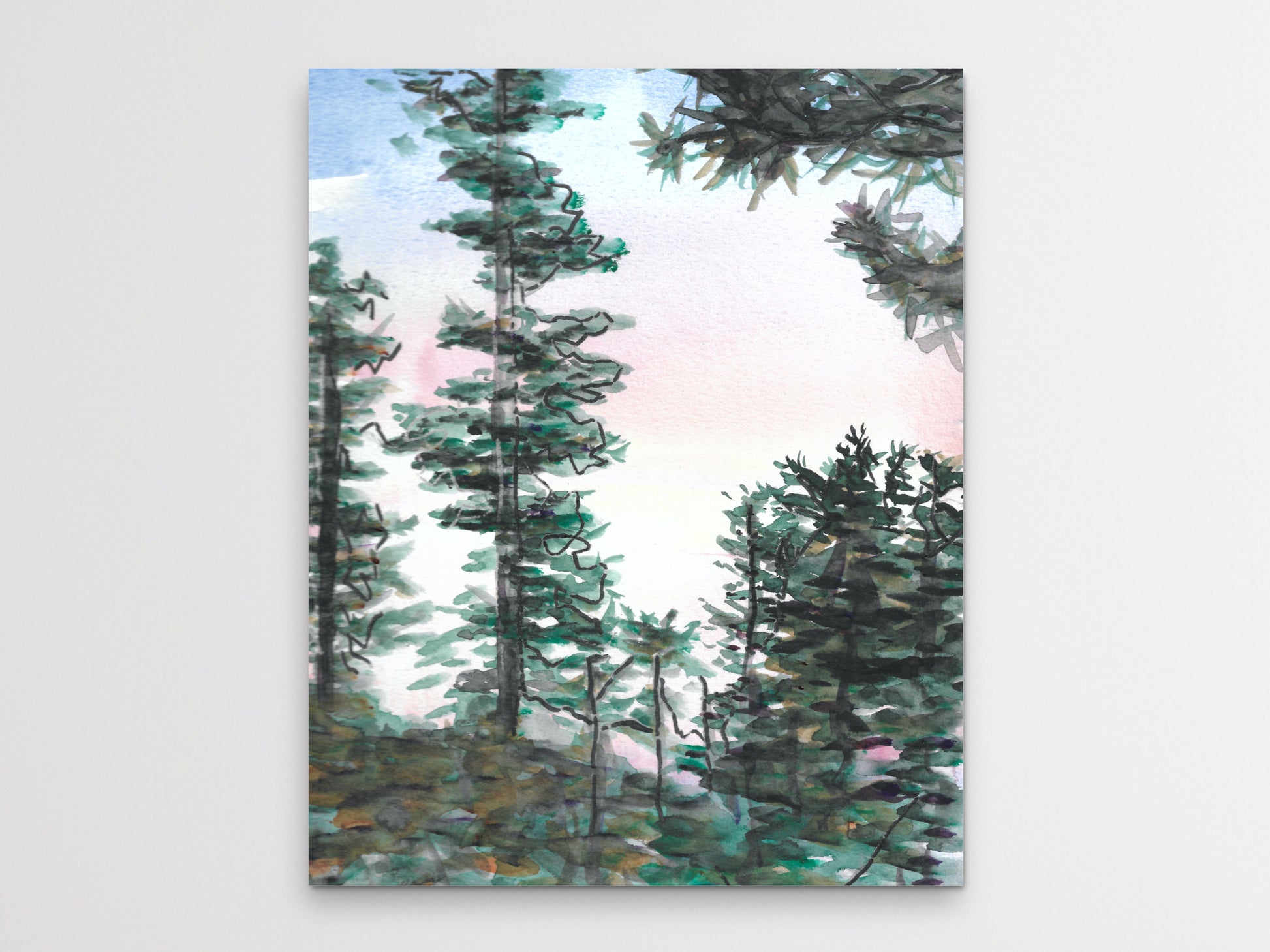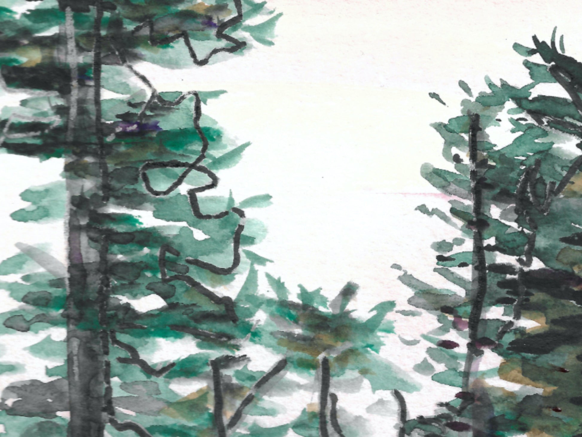 Watercolor and Ink Trees Art Print