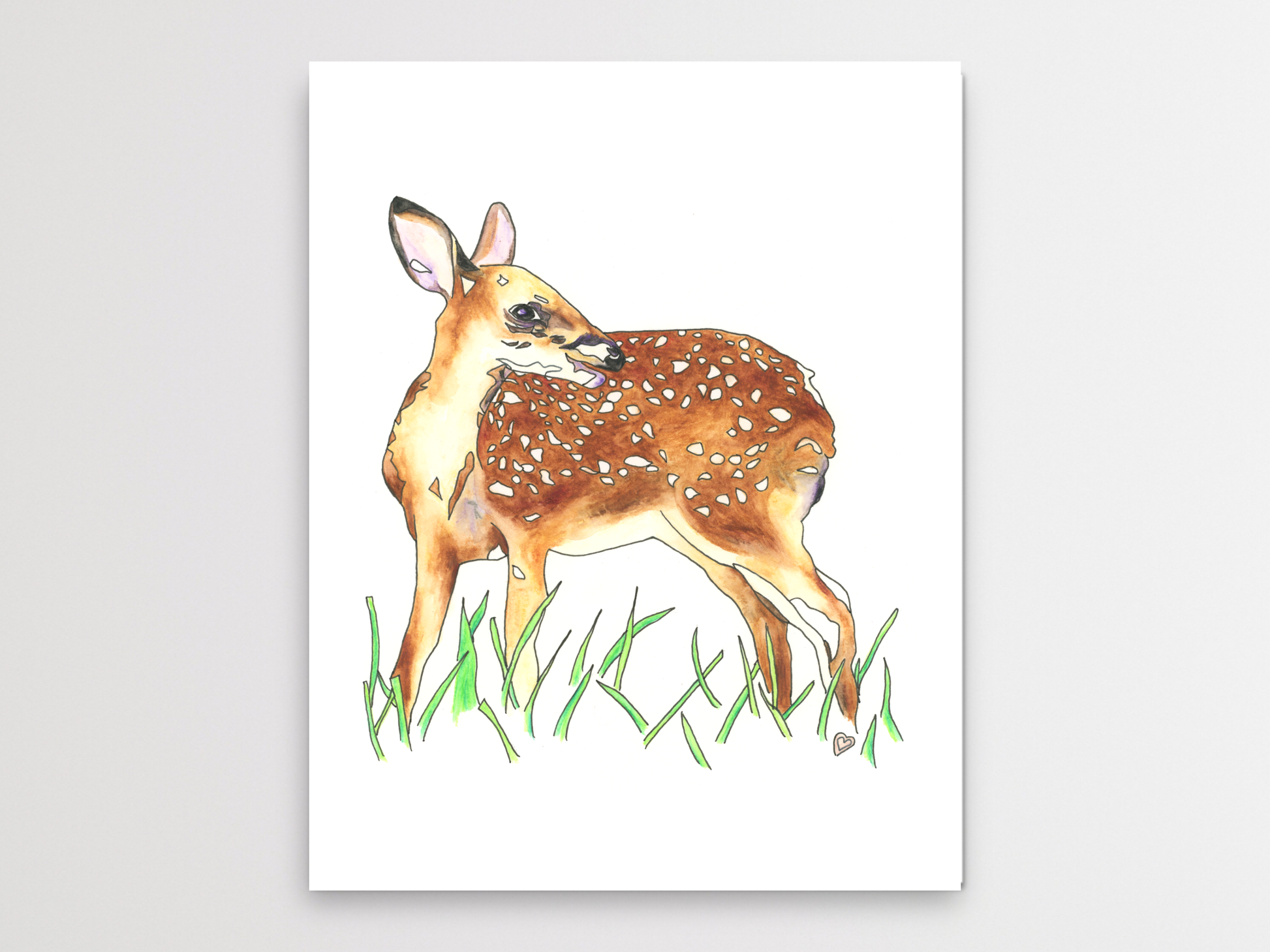 White Tailed Deer Fawn Art Print. State Symbol Deer Fawn